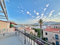 L'appartement «Belvedere» est situé à quelques mÚtres de la célÚbre et centrale Piazza di Mondello. Il est situé au troisiÚme étage d'un immeuble entiÚrement rénové et est équipé de tout le confort pour assurer un séjour paisible et tranquille dans la charmante station balnéaire de Mondello. Il a une capacité de 2 lits et est équipé de draps et serviettes. L'appartement comprend une chambre double, un salon avec une kitchenette entiÚrement équipée. Table à manger, ensemble complet de vaisselle, couverts, verres, vaisselle, réfrigérateur, plus salle de bain avec douche. Possibilité de lit simple supplémentaire. En outre, l'appartement dispose d'une grande terrasse panoramique de 30 mÚtres carrés avec vue sur le golfe de Mondello, meublée pendant l'été avec des canapés et des chaises longues. Autres équipements: TV numérique, WI-FI, climatisation, lit bébé gratuit sur demande.