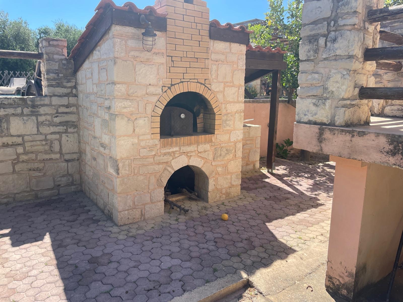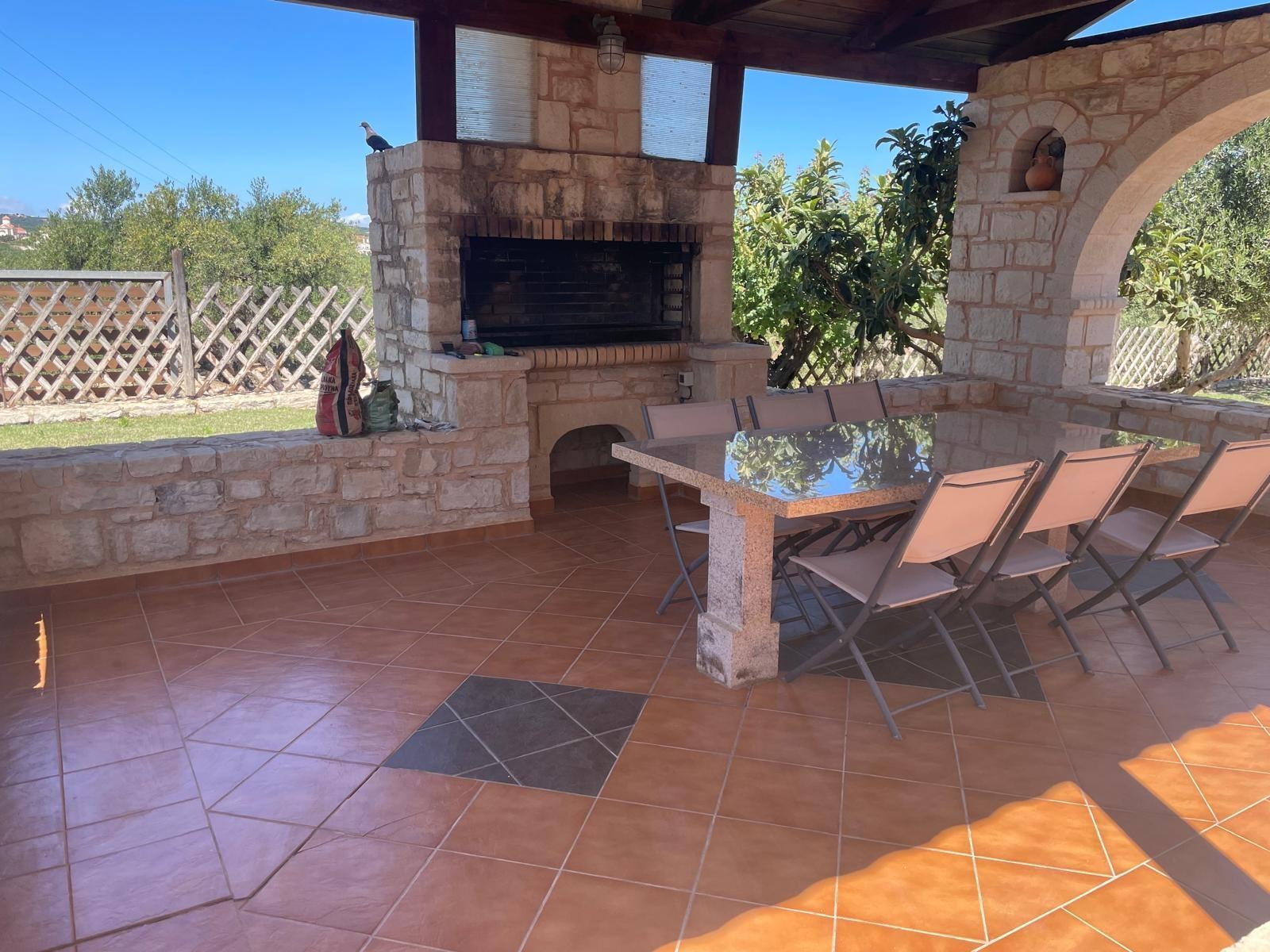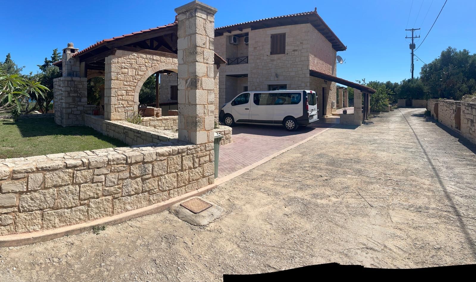 L'espace extĂ©rieur de Dias Villa est de 4000 mÂČ. m et magnifiquement conçu. Ă cĂŽtĂ© de la piscine privĂ©e - d'oĂč la vue panoramique sur la mer est incroyable - il y a un espace couvert avec une table rectangulaire en marbre. De ce cĂŽtĂ© de la villa, il y a aussi un four en pierre. De l'autre cĂŽtĂ©, il y a une autre zone couverte oĂč se trouve le barbecue. Le jardin de la villa fait partie d'un 23000m2. m terrain privĂ©, principalement couvert d'oliviers. Ă cĂŽtĂ© de la villa, il y a une zone clĂŽturĂ©e oĂč vivent des poules, un poney et une douce jument, Argyro.