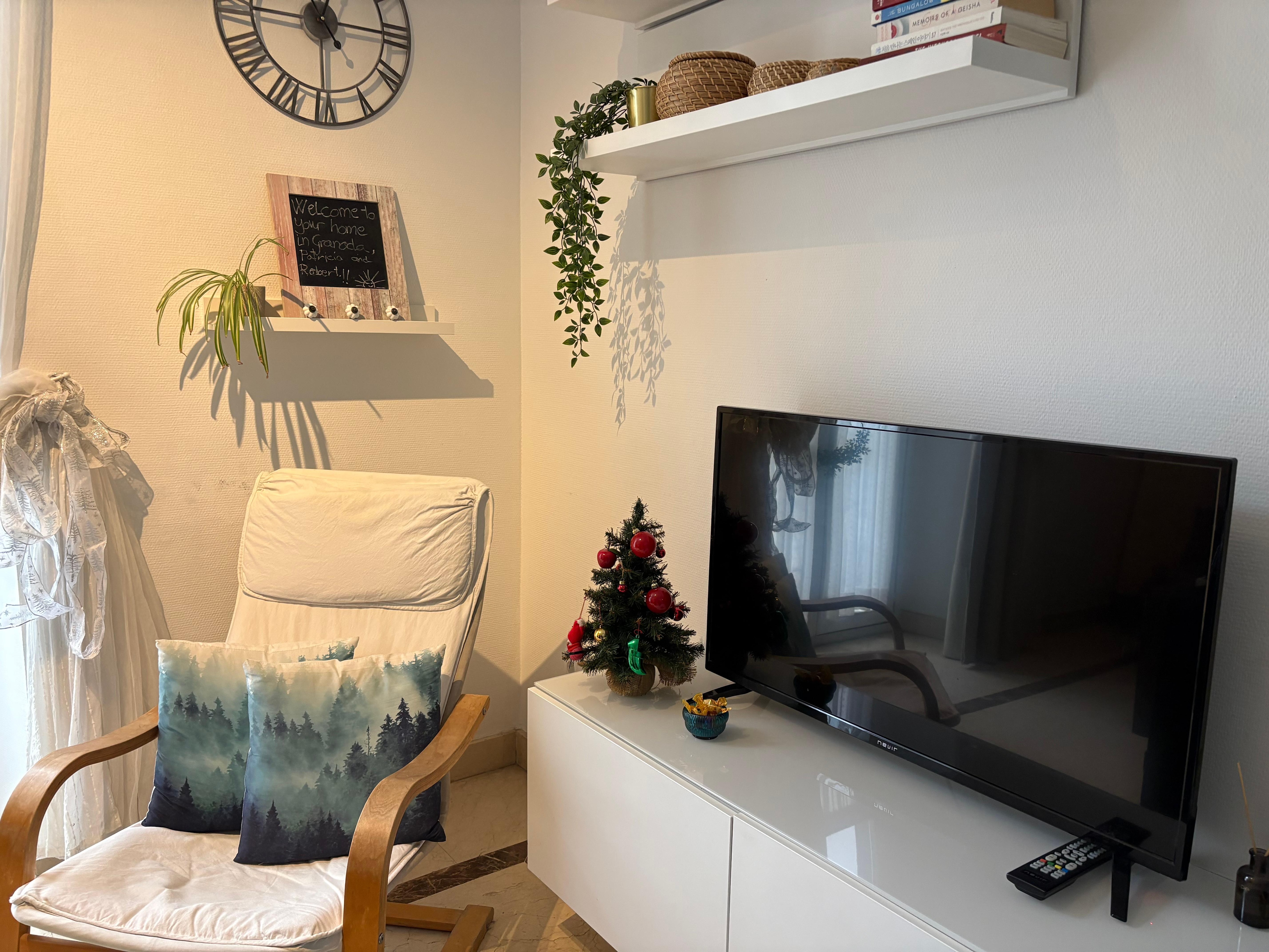 L'appartement comprend un salon spacieux, une chambre lumineuse, une salle de bains spacieuse et une cuisine bien Ă©quipĂ©e (micro-ondes, lave-linge, plaque vitrocĂ©ramique, rĂ©frigĂ©rateur avec congĂ©lateur, grille-pain, bouilloire, cafetiĂšre ... et tous les ustensiles). La fen ĂȘtre du salon donne accĂšs Ă un balcon avec vue directe sur la Gran VĂa de ColĂłn de Granada, ainsi qu'Ă la chambre Ă coucher qui possĂšde Ă©galement un balcon donnant sur la Gran VĂa, dotĂ©e d'un lit double confortable et spacieux.
