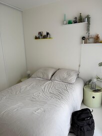 La cuisine est entiÚrement équipée : plaque à induction, four, lave-vaisselle, réfrigérateur, grille-pain, cafetiÚre, bouilloire, fer à repasser, sÚche-cheveux.