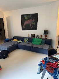 Lâespace de vie se compose dâune cuisine ouverte sur un salon chaleureux, Ă©quipĂ© dâun grand canapĂ© pouvant accueillir une personne pour la nuit, ainsi quâune grande table idĂ©ale pour les repas ou le tĂ©lĂ©travail. Lâappartement est bien sĂ»r Ă©quipĂ© du Wi-Fi.
