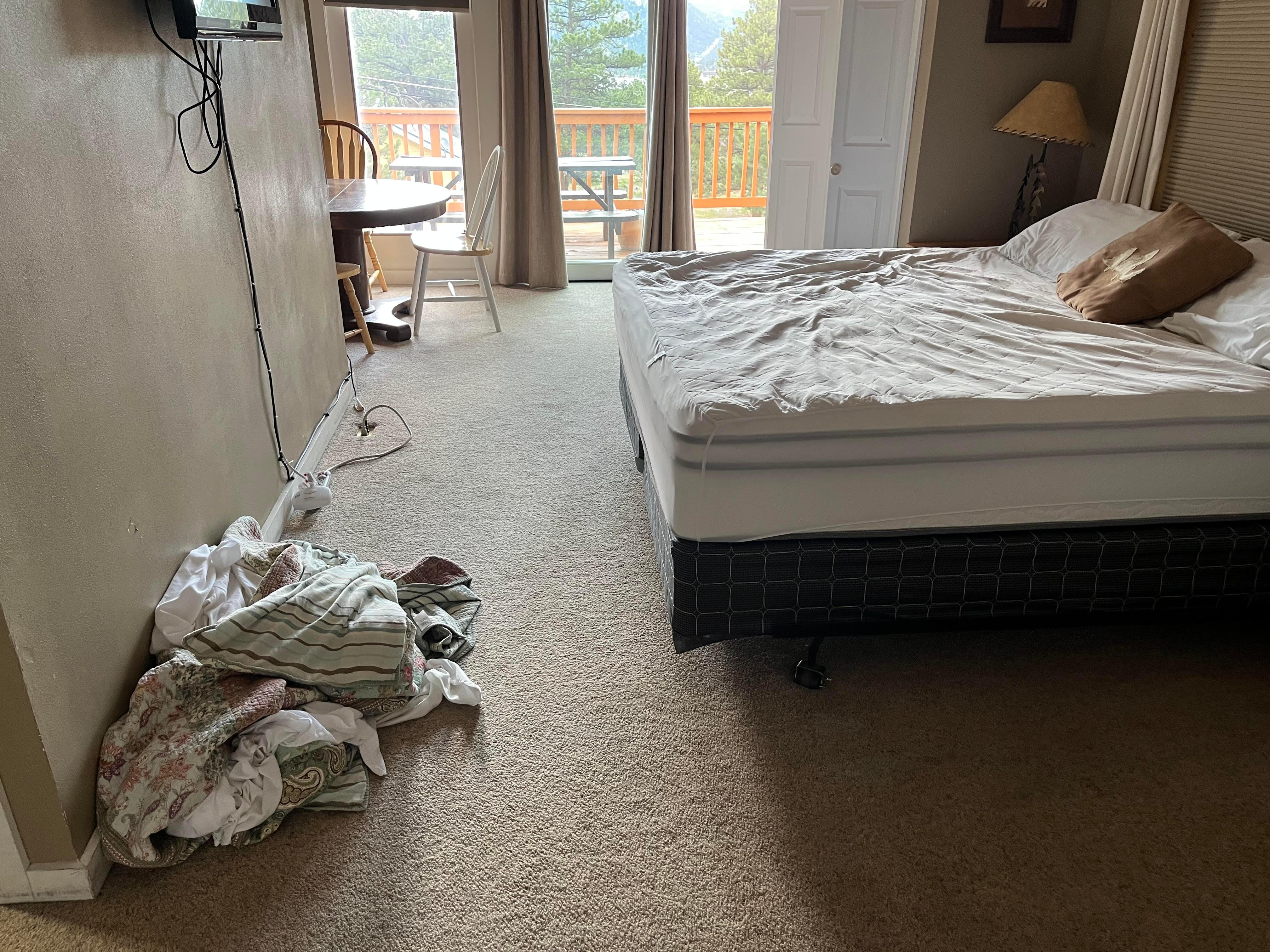 Veuillez noter que 4 chambres comprennent 2 lits king-size et 2 lits queen-size. Deux lits-lits supplĂ©mentaires haut de gamme sont disponibles pour offrir une flexibilitĂ© dans les dispositions de couchage pour 2 personnes supplĂ©mentaires, ce qui porte le total Ă 10, ce qui est ce que la cabine est autorisĂ©e Ă dormir. En outre, la propriĂ©tĂ© dispose du chauffage, mais pas de la climatisation, semblable Ă la majoritĂ© des propriĂ©tĂ©s d'Estes Park. Chaque chambre dispose d'un ventilateur au plafond ou sur pied et la plupart des fenĂȘtres sont grillagĂ©es.