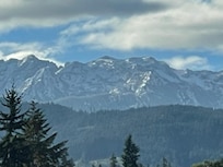 CONDO B - condo de trois étages avec une vue imprenable sur les montagnes olympiques et le détroit de Juan de Fuca. AccÚs proche du parc national et du ferry pour Victoria. Cuisine entiÚrement équipée et terrasse spacieuse avec barbecue donnant sur l'eau. 2 chambres à coucher avec des vues fantastiques, 2 salles de bains à l'étage, 1 chambre en bas pour une intimité totale, nous l'appelons la chambre "Peak A Boo" qui a un lit queen size. Nous avons également un play n pak et une chaise haute disponibles. Notre Cond B est un condo de trois étages avec une vue imprenable à couper le souffle sur les montagnes olympiques, 1/2 salle de bain est au rez-de-chaussée, dort 6 confortablement. Dispose également d'un garage sécurisé. Cour arriÚre fermée privée, endroit idéal pour se détendre et se détendre aprÚs une aventure à travers la péninsule olympique.