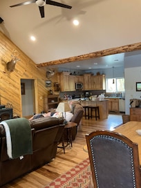 Ce 3 chambres (1 lit king et 2 lits queen) offre plus d'espace. Notre maison a des planchers de bois de hickory, des carreaux et des tapis. Plans de travail en granit. Laveuse et sécheuse disponibles. Cette propriété vous donnera la liberté et l'espace pour profiter de l'eau courante et bien plus encore.