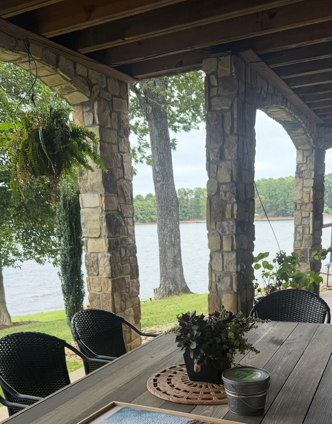 The home is located on a "Point Lot" on Lake Norman which affords 270 degrees of lake view. The home also has a boat house built in 1962 which the VRBO guests will also have access to. There is a back porch for the guests with a table and chairs and there is also a gas grill available for guest use.