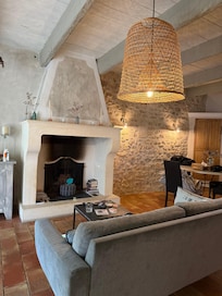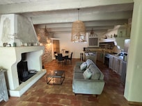 jolie mazet au calme, entiÚrement rénové avec beaucoup de charme, poutres apparentes, murs en pierres permettant de garder la fraicheur des lieux.