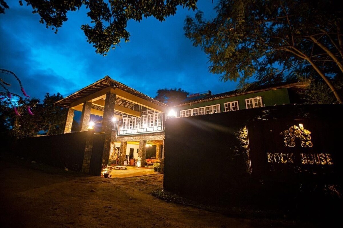Rock with green garden bungalow in bandarawela.bbq service hammock area, and in door out door party area. Attached bathrooms with solar hot water. Pallets beds and furniture , freedoms is very highâŠ..