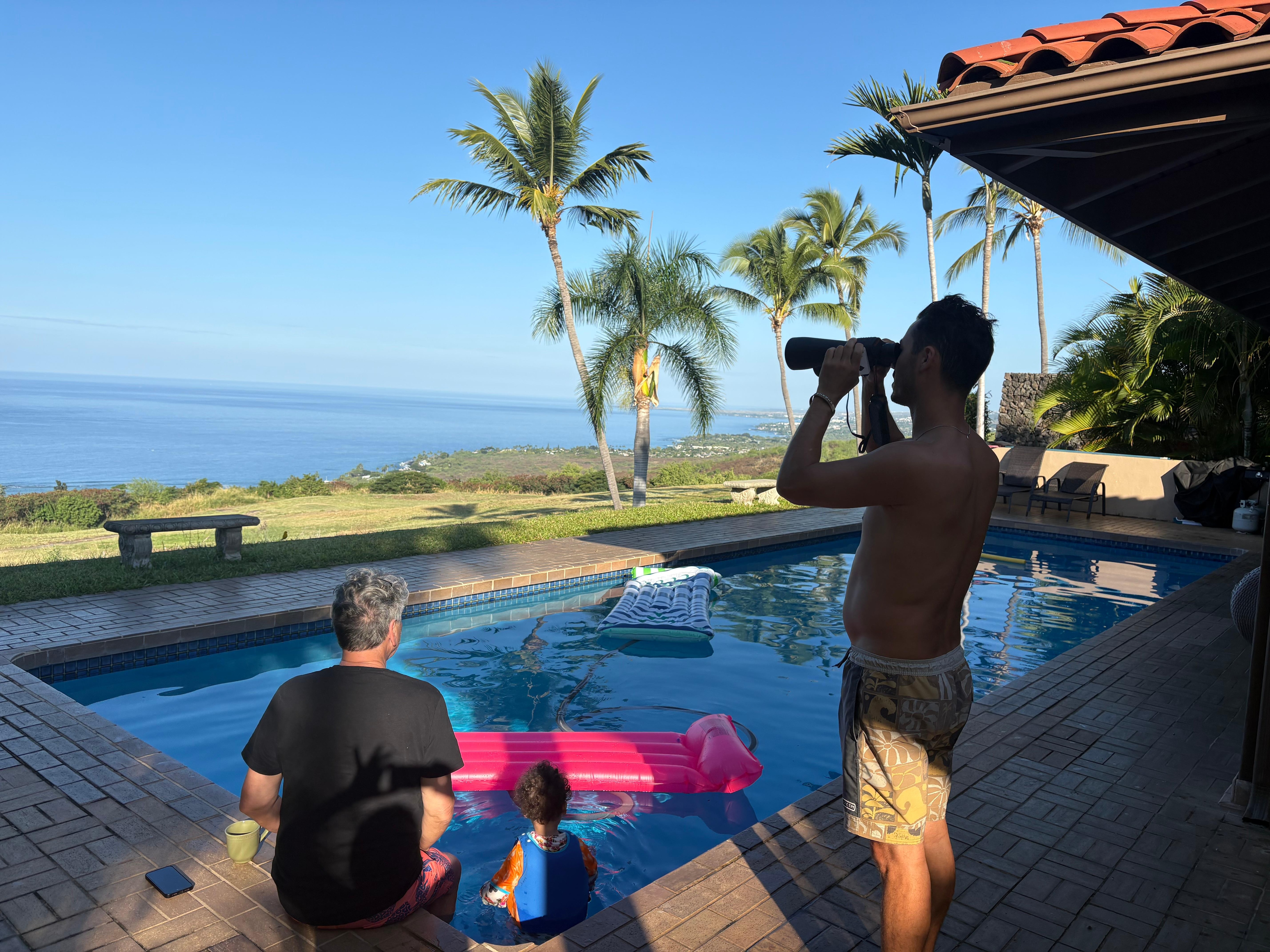 Profitez de la magnifique vue panoramique sur l'ocĂ©an et de l'amĂ©nagement paysager tropical dans cette maison privĂ©e. SituĂ© sur les fronts et parcours de golf de Kona Country Club dans la prestigieuse communautĂ© Keauhou Estates, fermĂ©e pour la sĂ©curitĂ© avec un service de garde 24 heures. Cette maison se trouve Ă une altitude confortable de 700 pieds. Passez des heures sur la terrasse exclusive de la piscine et profitez d'une vue imprenable sur l'ocĂ©an Pacifique, les couchers de soleil et les lumiĂšres nocturnes de Kailua-Kona. Pendant les mois d'hiver, vous vous asseyez et surveillez les baleines Ă bosse ou les cosses de dauphins Ă long bec tout au long de l'annĂ©e. La terrasse privĂ©e de la piscine vous accueille pour un petit-dĂ©jeuner tropical et pour dĂźner au coucher du soleil avec un coin barbecue et un coin salon. Notre maison a accueilli une grande variĂ©tĂ© de clients, des familles aux couples en lune de miel, et les clients qui souhaitent simplement ĂȘtre non seulement en vacances, mais "se sentir" en vacances.