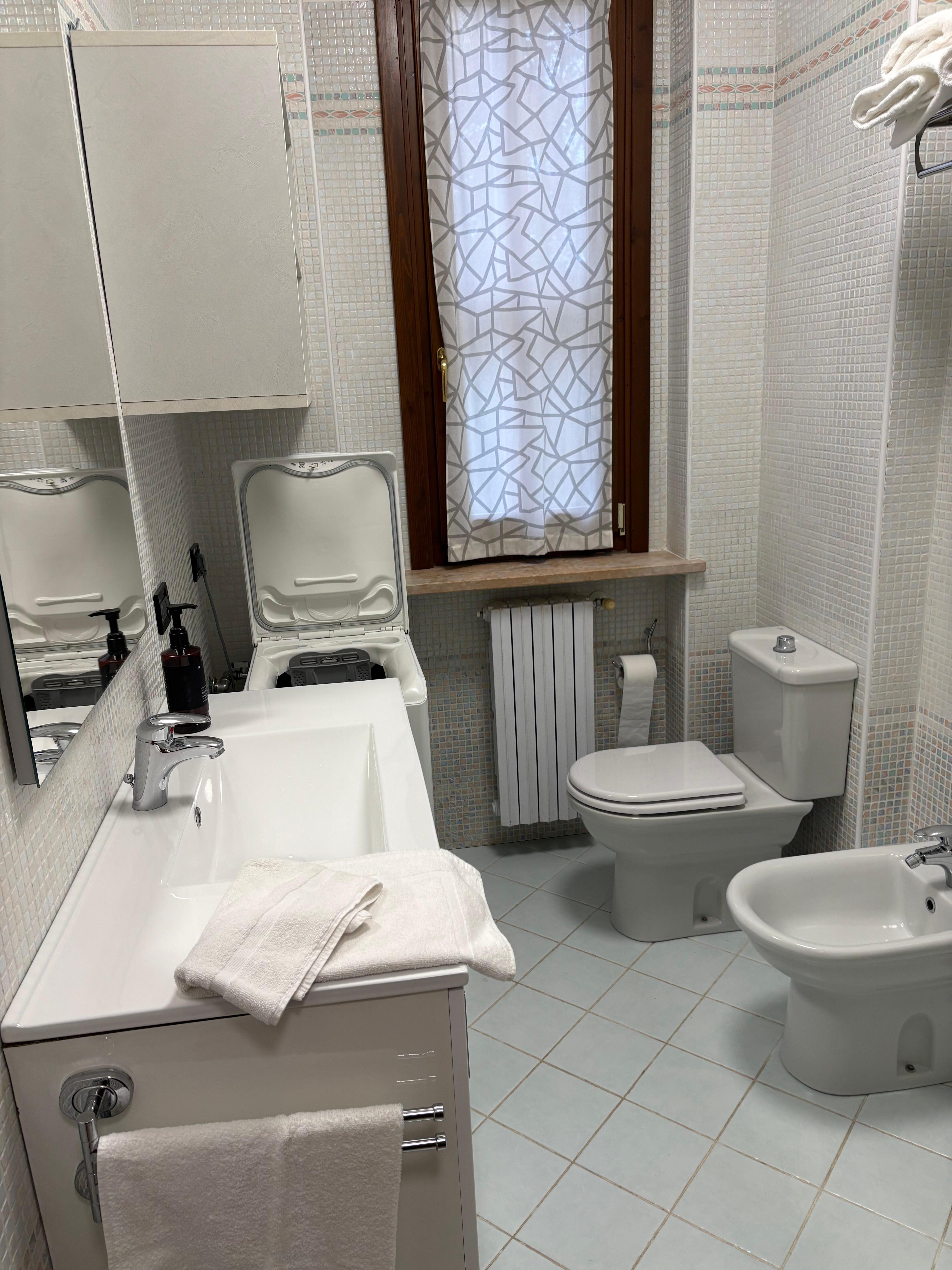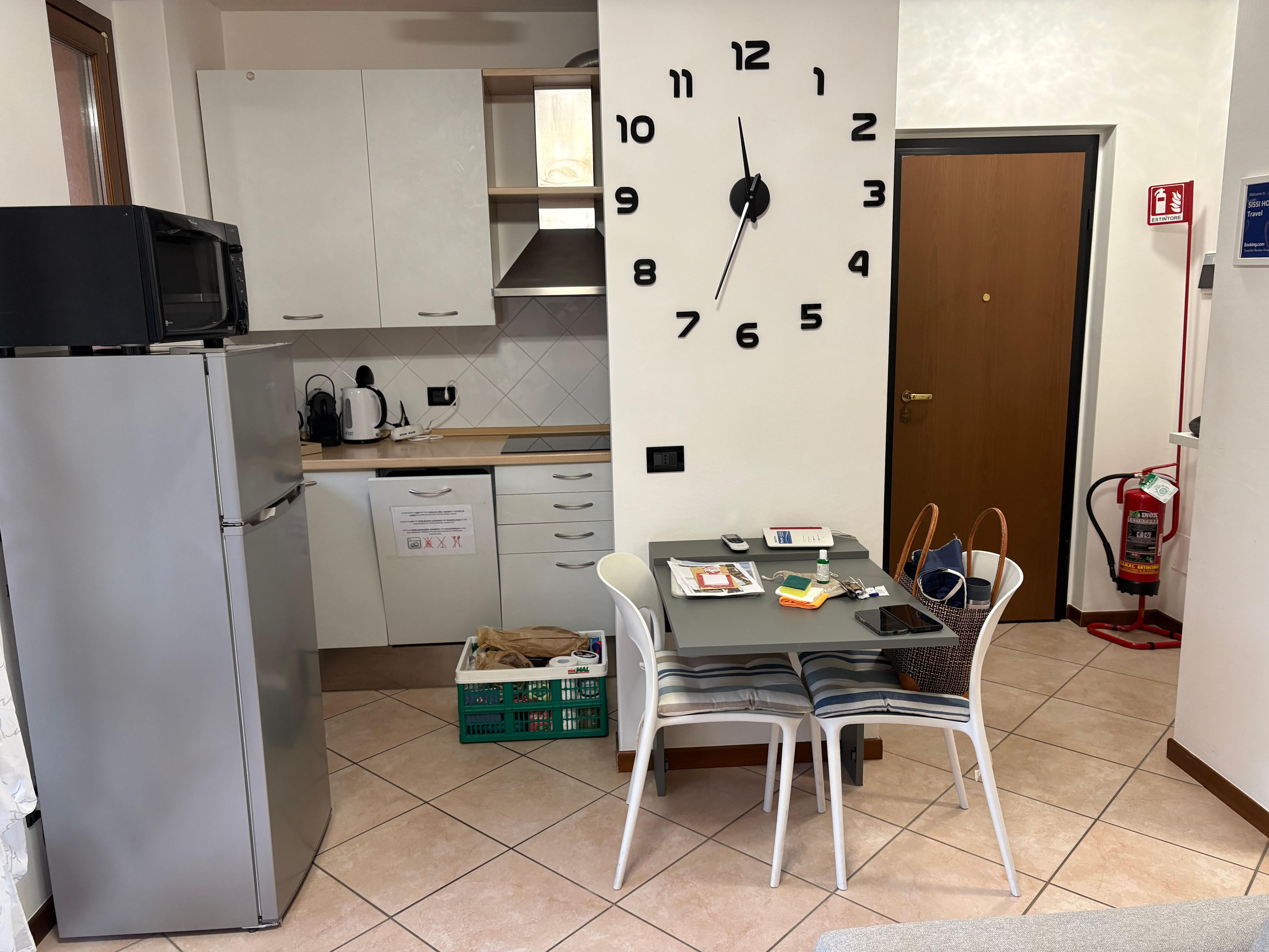 L\'appartement dispose d\'un coin cuisine entiĂšrement Ă©quipĂ© avec plaque Ă induction, four Ă micro-ondes, lave-vaisselle, bouilloire, grille-pain, machine Ă cafĂ© allemande, rĂ©frigĂ©rateur avec congĂ©lateur, petit plan de travail utilisable comme table pour deux personnes. Il n\'y a pas de table dans le salon, mais les jours plus frais, il est possible d\'utiliser la table sur la terrasse Ă l\'intĂ©rieur de l\'appartement. CanapĂ©-lit confortable (recommandĂ© pour un adulte ou deux enfants). TĂ©lĂ©vision par satellite, wifi et climatisation Ă la disposition des invitĂ©s. La zone nuit se compose d\'une chambre double moderne avec un grand dressing et un lit simple escamotable. Salle de bain avec fenĂȘtre, douche, sĂšche-cheveux et lave-linge Ă la disposition des invitĂ©s. Une place de parking rĂ©servĂ©e dans le garage de 205x235 cm. Appartement non-fumeur. Animaux non admis.