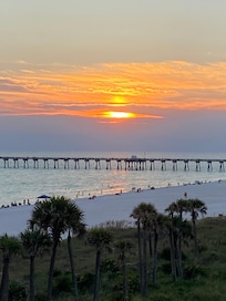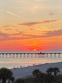 An oversized Balcony on the end where we feel breezes most of the time. Overlooks the beach and MB Miller County Pier! Back access to Middle Beach Road to avoid traffic during busy times. Also lots of great restaurants close by!