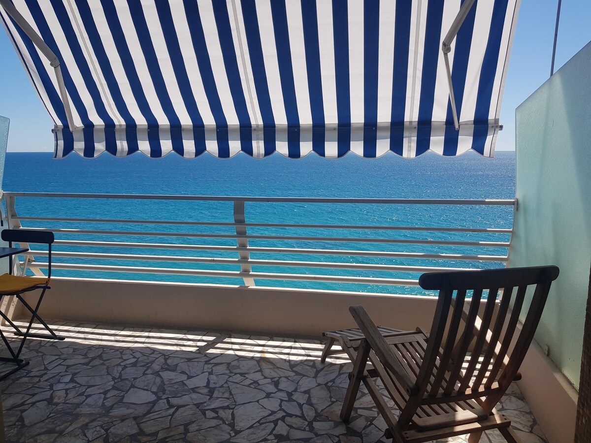 Grande monolocale fronte mare di 44 metri quadrati , Condomino di lusso, dotato di portineria . Alloggio situato al quinto piano con eccezionale vista panoramica sul golfo di Mentone. TUtte comodita , aria condizionata
