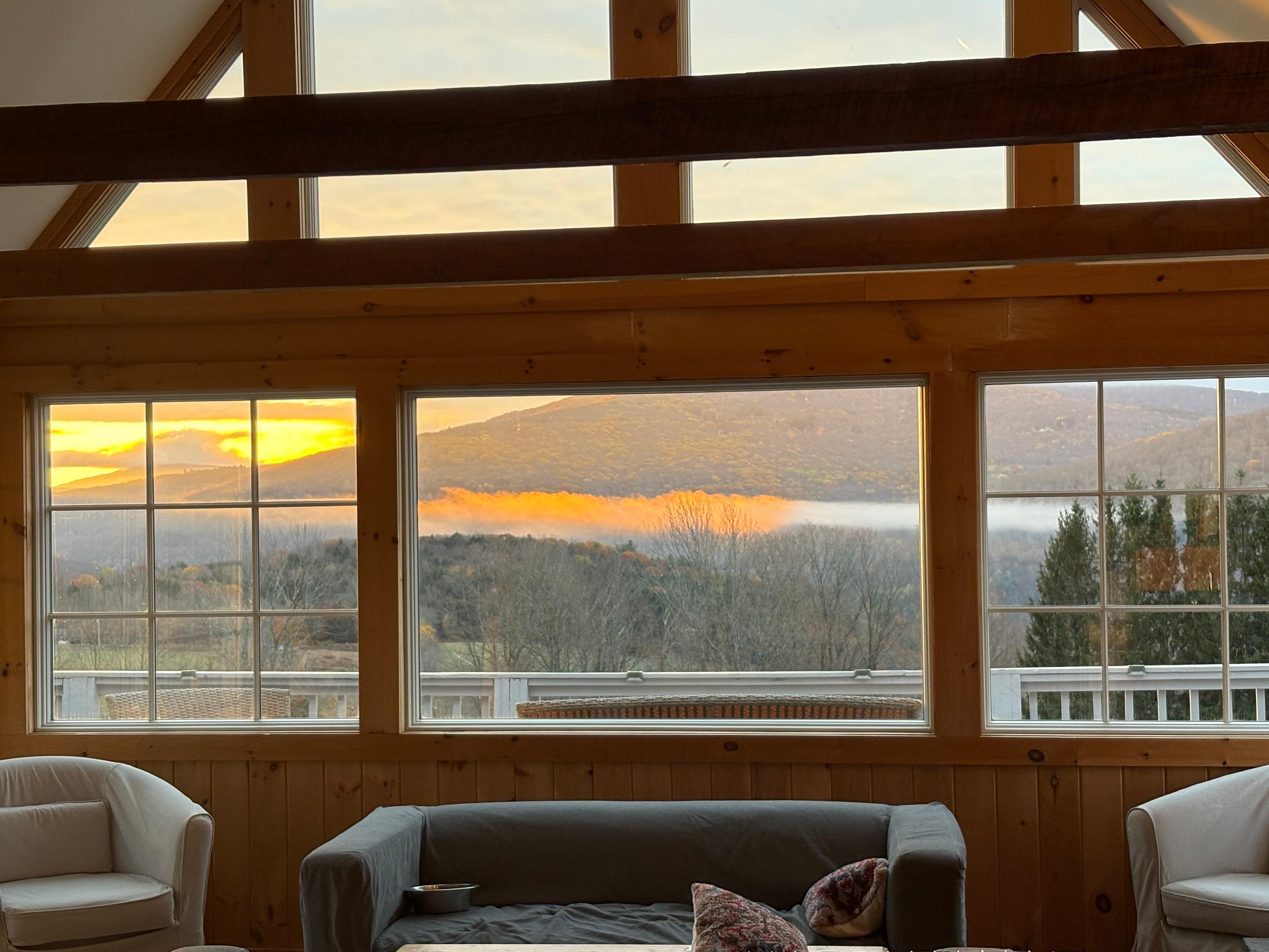 Highly recommend a stay! The chalet is beautiful and has everything you need! The kitchen is equipped with all essentials, is always neat and clean, beds are freshly made and there are plenty of clean towels. There are board games, books, smart TV for you to enjoy with family and friends! But our very favorite is the view⊠watching the sunrise with a hot cup of coffee and then the sunset with a glass of wine!đ