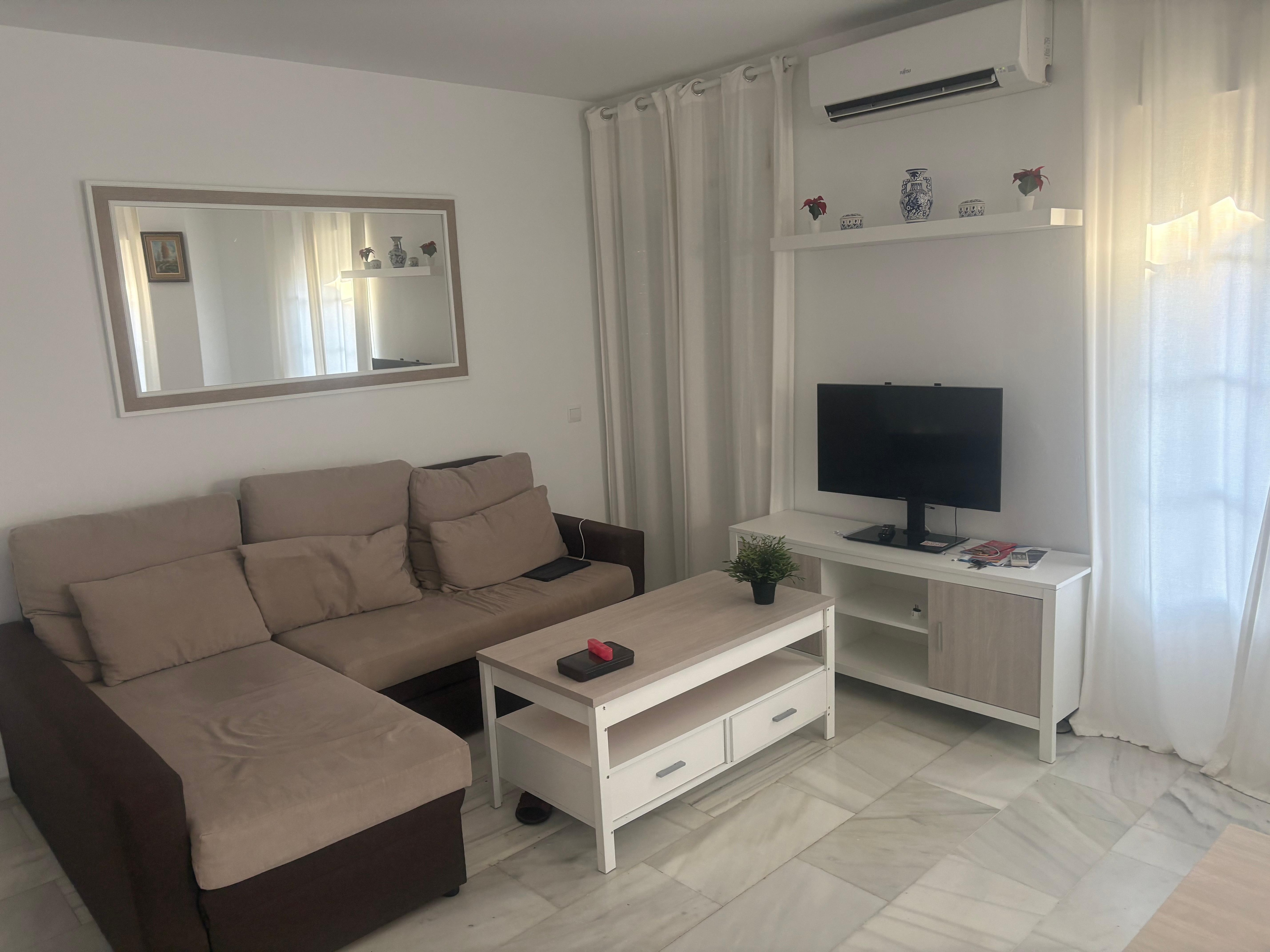 Welcome to our 2-guest Montesa apartment! You will be on the second floor of a two-story building with a shared rooftop terrace with umbrellas, chairs, and tables. You will have a street view with a park in front in this quiet area of Malaga. There is only one apartment per floor, so the rooftop is only shared with one more apartment, and there is no elevator.