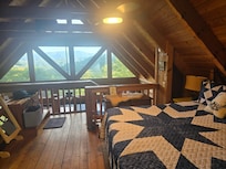 Le plan d'étage ouvert présente des plafonds voûtés avec des baies vitrées du sol au plafond pour une vue panoramique. Meublé avec un canapé-lit en cuir avec un matelas en mousse à mémoire de forme confortable, une cheminée en pierre rustique et une télévision à écran plat pour profiter de votre émission ou jeu préféré. La cuisine est entiÚrement équipée et le coin repas est une table de réunion pour que vous puissiez prendre vos repas à la maison!