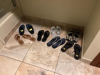 - Master Bath attenant a des carreaux de travertin, un Washlet Toto et une petite baignoire / douche.