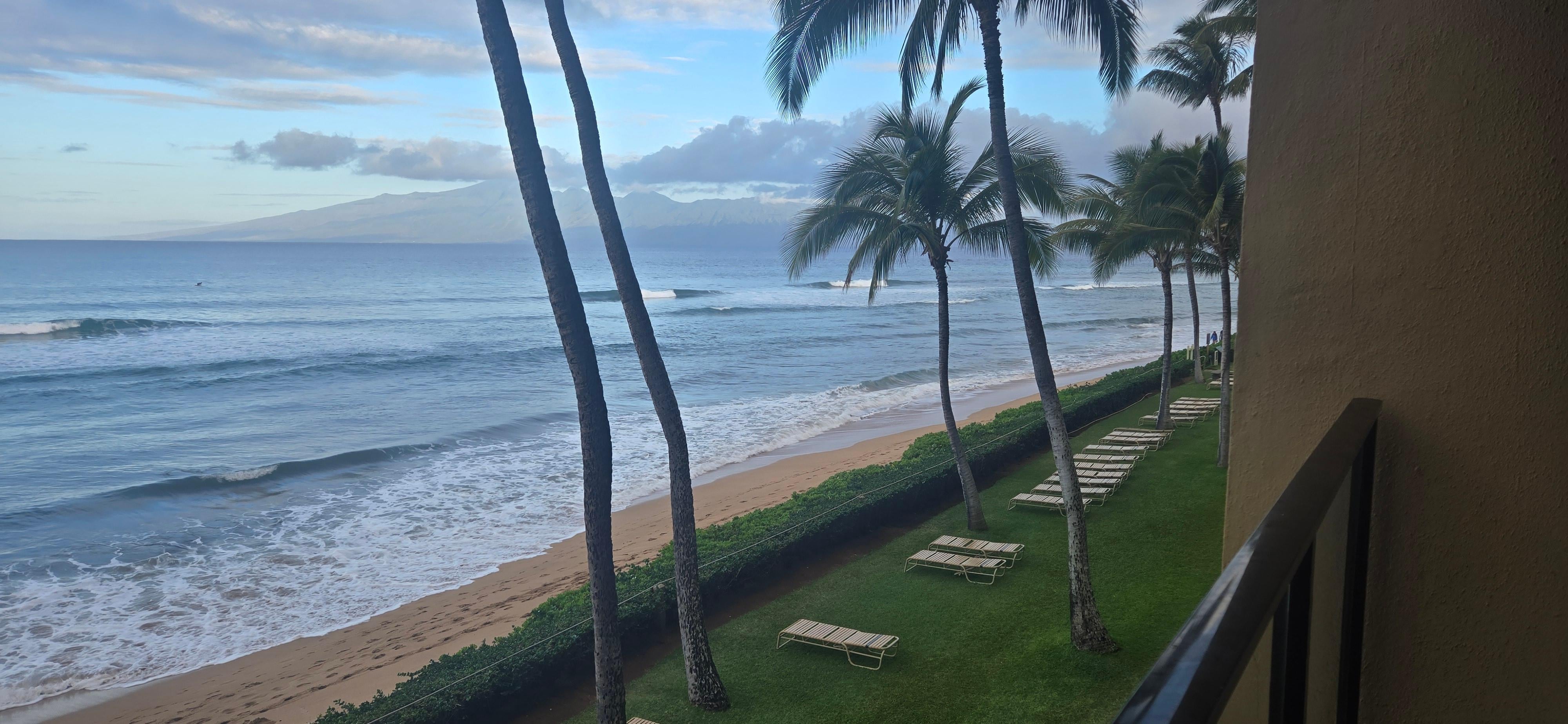Notre luxueuse suite cÎtiÚre contemporaine et entiÚrement rénovée (mai 2018) avec une baie vitrée et une véranda privée est située sur la plage de Kaanapali, juste au nord de la célÚbre Puu Kekaa (plage de Black Rock). Nous sommes au 3Úme étage du bùtiment Lanai (bùtiment de gauche) au Mahana.