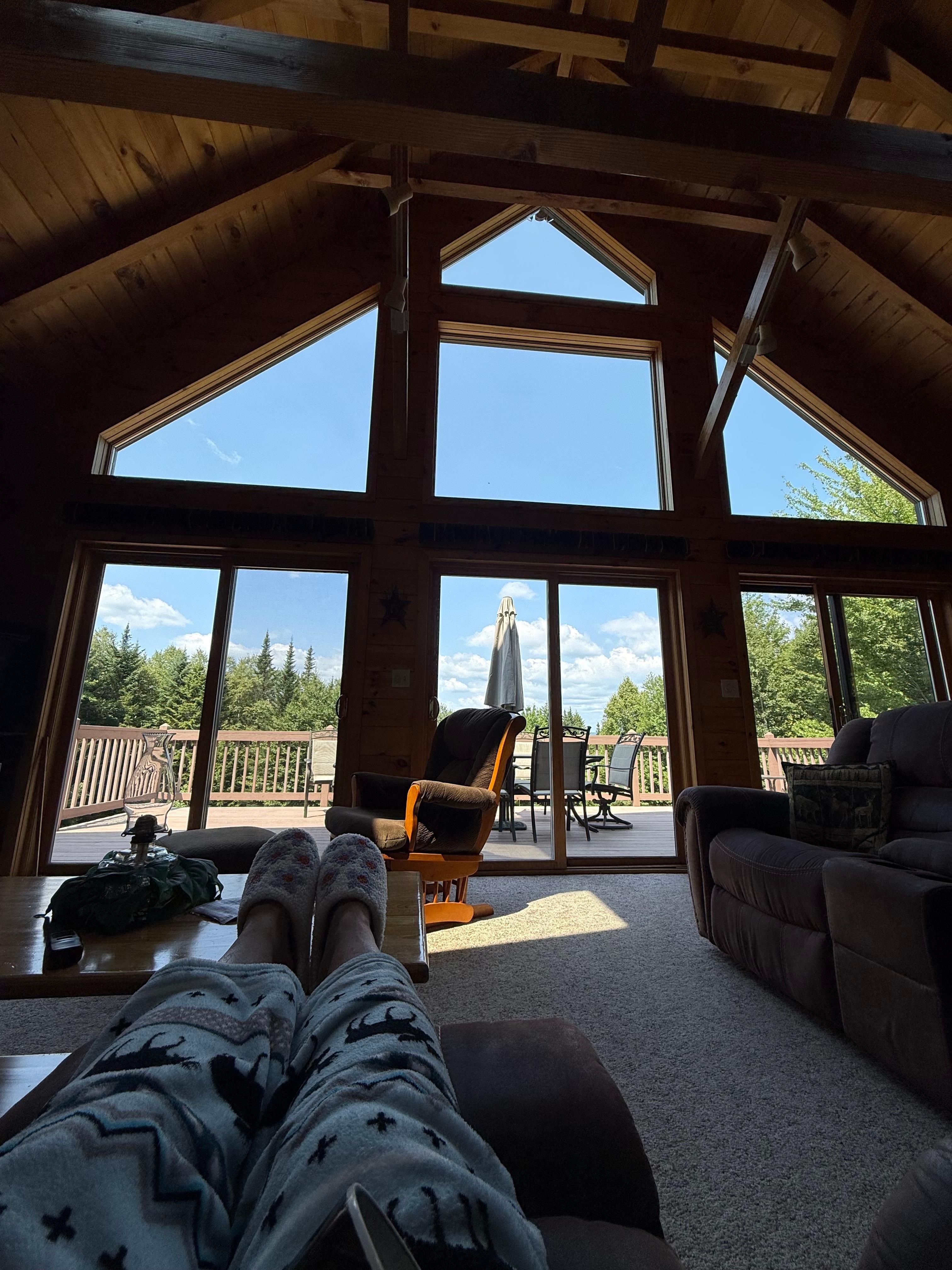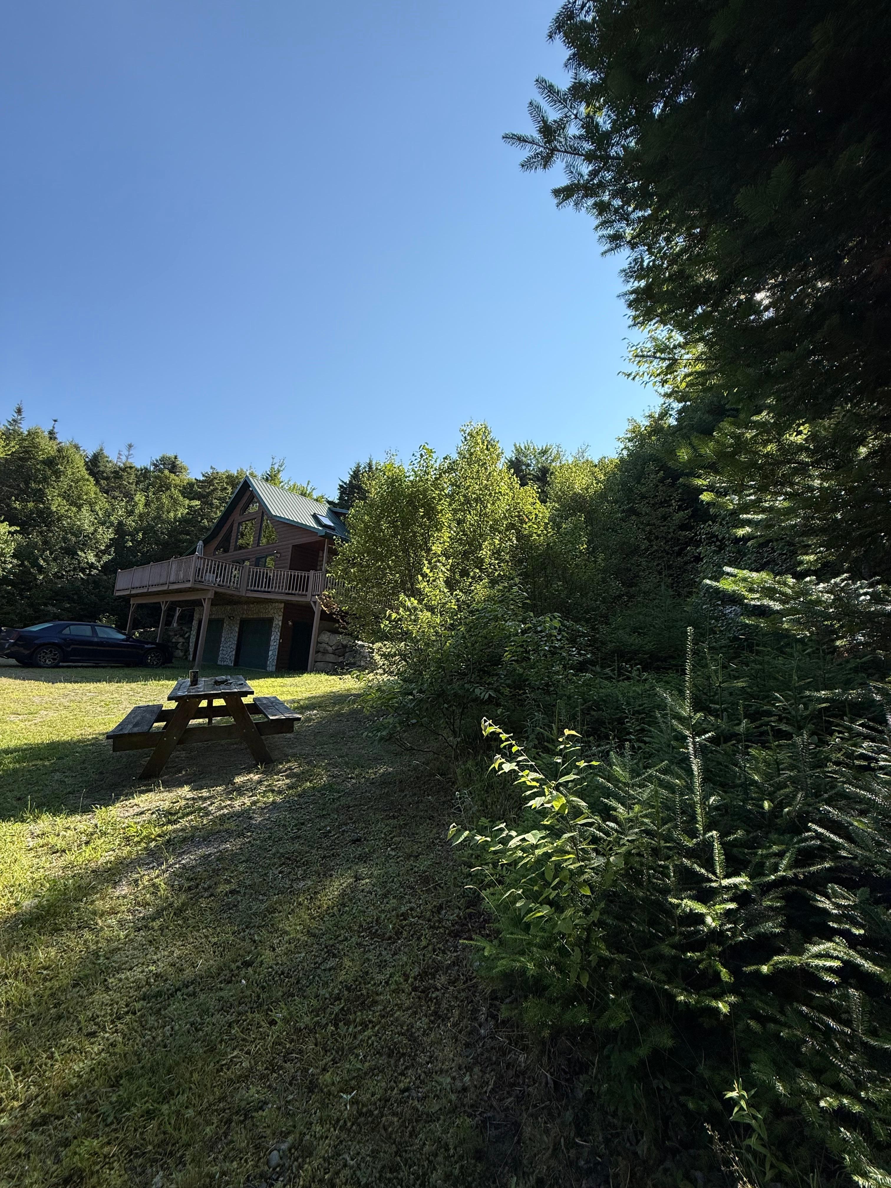 SituĂ© sur cinq acres, ce chalet Ă pans de bois et Ă poutres apparentes surplombe un petit Ă©tang et offre une vue saisonniĂšre sur le coucher du soleil sur la montagne. Il comprend 3 chambres (dont une mezzanine), 1 1/2 salle de bains avec carrelage et bain Ă remous, une grande mezzanine / salle de jeux / lit ouverte avec tĂ©lĂ©vision par satellite, table de billard, table de jeux, baby-foot, bar, jeu de flĂ©chettes et coin salon avec futon. La maison peut facilement accueillir 6 personnes et dispose d'une cuisine entiĂšrement Ă©quipĂ©e, d'un salon / salle Ă manger, d'un foyer au gaz intĂ©rieur / extĂ©rieur, de puits de lumiĂšre, d'une terrasse, de deux vĂ©randas, d'un barbecue Ă gaz et d'un sous-sol complet avec laveuse / sĂ©cheuse, table de ping-pong, flipper et 2 voitures garage. La propriĂ©tĂ© est Ă©galement trĂšs joliment amĂ©nagĂ©e avec des parois rocheuses et un ruisseau. La rĂ©gion regorge de faune et d'activitĂ©s de plein air! Il n'est qu'Ă quelques minutes du parc d'Ătat de Dixville Notch et du Balsams Wilderness Resort, de la riviĂšre Androscogin, de l'Ă©tang d'Akers et du lac Umbagog. De plus, Grafton Notch State Park, Sunday River Resort et la rĂ©gion des lacs Rangely dans le Maine ne sont qu'Ă une courte distance en voiture! Il y a un accĂšs direct aux sentiers de motoneige et nous sommes trĂšs proches de l'accĂšs aux sentiers de VTT!