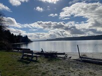 Notre plage de sable abrite une variété de vie marine, de mammifÚres et d'oiseaux. Vous verrez probablement des aigles, des hérons bleus, des loutres de mer occasionnelles, des phoques ou des orques si vous gardez les yeux sur l'eau. Il y a un grand lit de sable et plusieurs coquillages le long de la plage.
