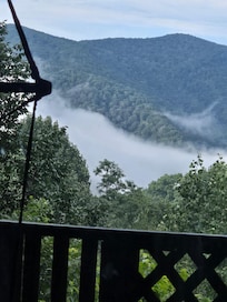 Vous pourrez vous balancer sur votre chaise ou griller sur le pont tout en admirant la vue à 180 degrés sur la montagne et en profitant de l'air des montagnes. Cette cabine de style chalet est dotée de nombreux équipements modernes, tels qu'une salle de bains carrelée chauffée avec douche à vapeur, baignoire jacuzzi et sauna privé, une cheminée à bois, des ventilateurs de plafond, des lits confortables avec matelas de luxe, une cuisine actualisée en acier inoxydable. appareils électroménagers et un parking couvert.