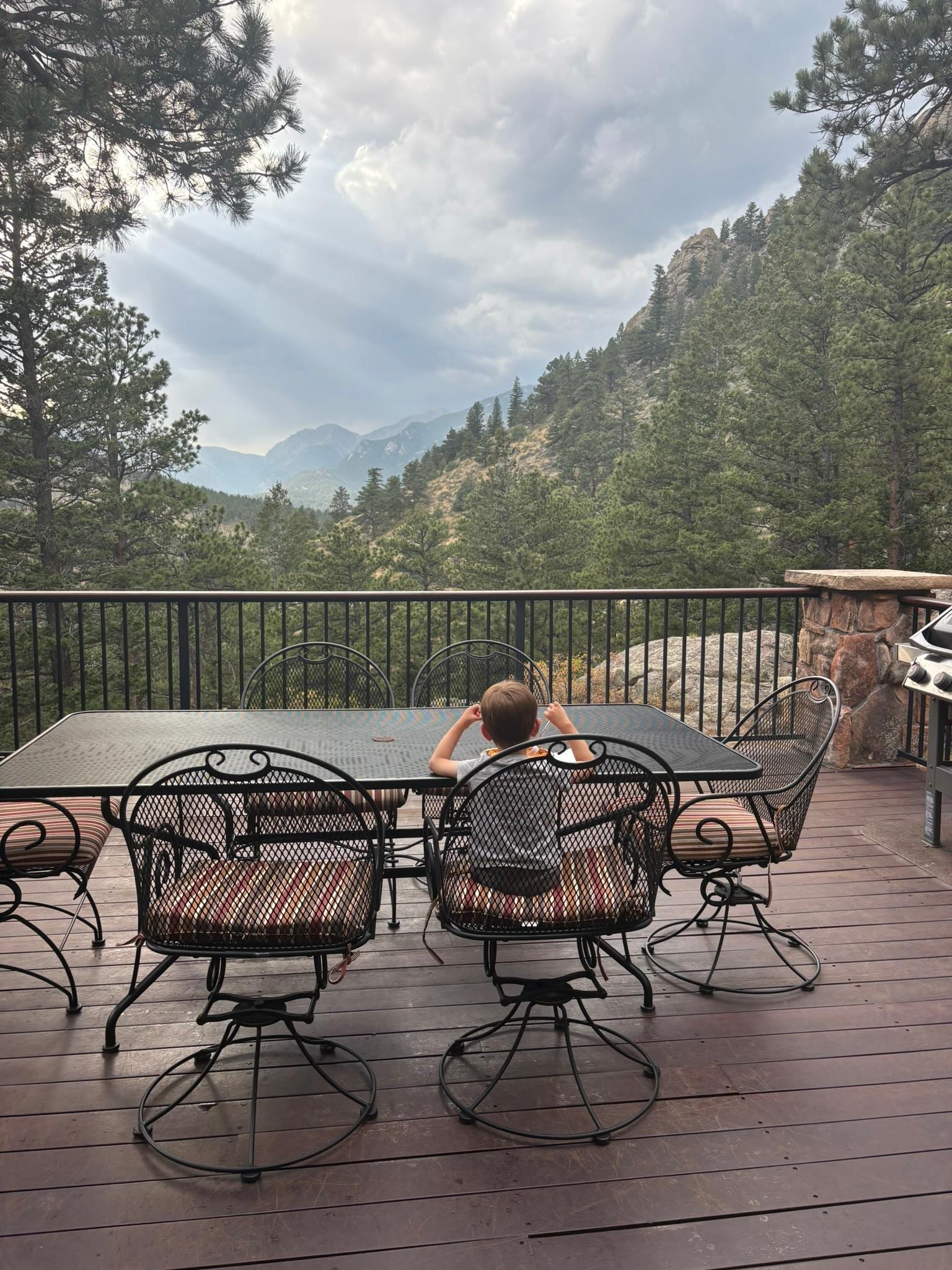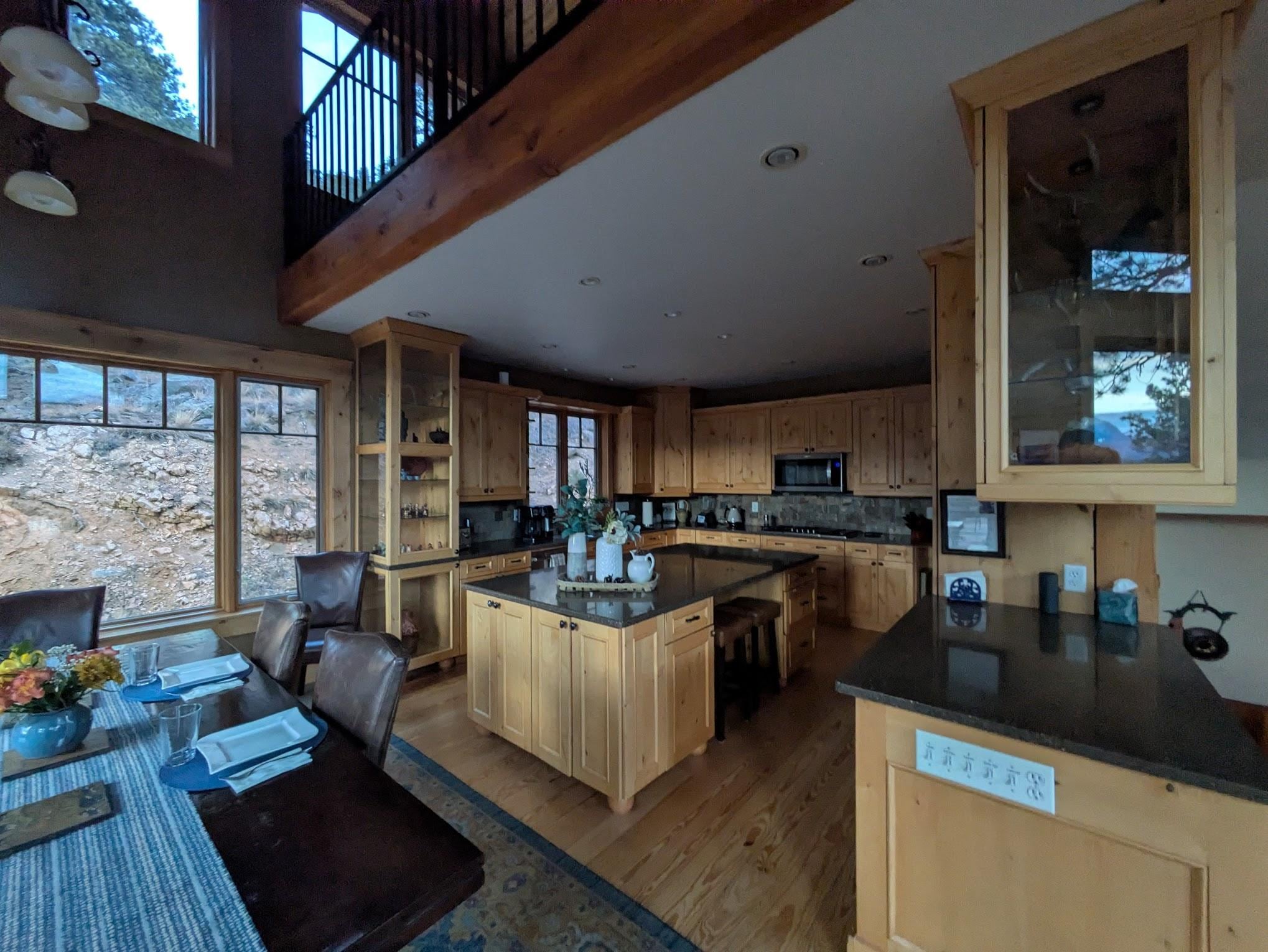 Estes Peak Retreat dispose d'une cuisine de luxe qui fait rĂȘver un cuisinier. Il a des comptoirs en granit spacieux, y compris une Ăźle luxueuse avec des tabourets. Il est entiĂšrement Ă©quipĂ© avec tout d'excellents ustensiles de cuisine et d'Ă©pices Ă une cuisiniĂšre Ă gaz, rĂ©frigĂ©rateur en acier inoxydable, four Ă©lectrique et micro-ondes. La salle Ă manger a une table de salle Ă manger Ă©tendue idĂ©ale pour les rĂ©unions de famille ou un rassemblement entre amis.