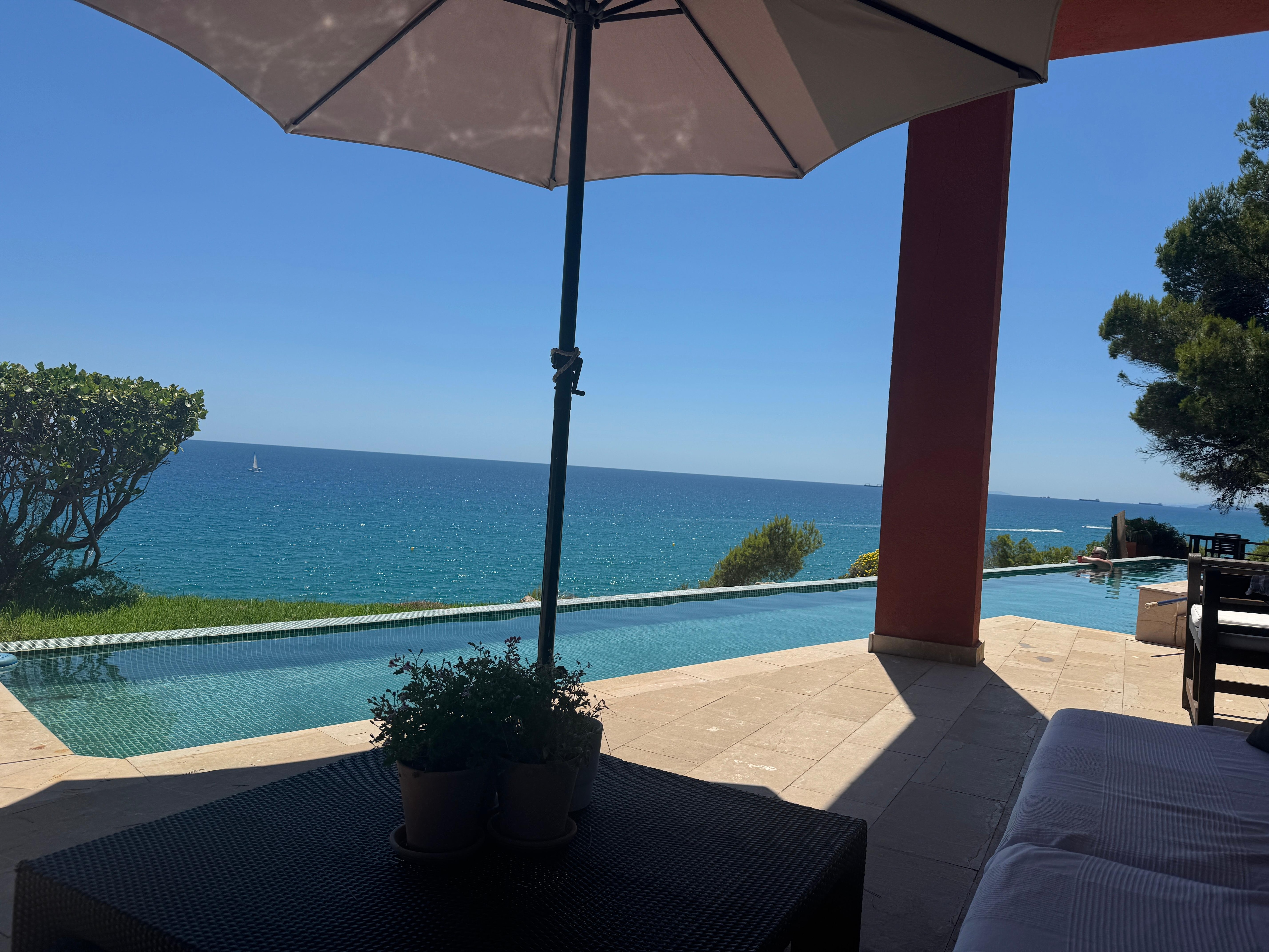 La maison est situĂ©e sur un terrain de 1550m2, dans la prestigieuse urbanisation de Cala Tamarit, en bord de mer, entourĂ©e de pins et de la vĂ©gĂ©tation indigĂšne de la rĂ©gion, ainsi que de falaises. Il a un accĂšs Ă pied (15 minutes) Ă la plage de La Mora et Altafulla et une petite crique au pied du chĂąteau de Tamarit (10 minutes). Devant la maison, un petit sentier longe la cĂŽte. La maison d'architecture moderne se compose de deux Ă©tages. Au rez-de-chaussĂ©e se trouvent 4 chambres dont 3 avec vue sur la mer et 3 salles de bain, ainsi que la salle Ă manger sĂ©parĂ©e du salon par quatre marches, toutes les piĂšces offrant une vue directe sur la mer. Les 4 chambres sont climatisĂ©es. Dans le reste de la maison il n'y a pas de climatisation. En face de la salle de sĂ©jour, il y a une vĂ©randa donnant sur la piscine de 50m2 et la mer, avec des meubles de dĂ©tente. La cuisine est un espace semi-ouvert Ă la salle Ă manger avec une grande luminositĂ©. Ă l'Ă©tage supĂ©rieur, il y a un salon et un bureau avec deux terrasses spectaculaires au-dessus de la mer. Le village et ses terres, a 60 mĂštres linĂ©aires avant de la mer, de sorte que pratiquement toutes les chambres offrent une vue spectaculaire. La parcelle a 500m forĂȘt de pins privĂ©e, idĂ©al pour siesta et passer des heures les plus chaudes de la journĂ©e. Il dispose Ă©galement d'un parking privĂ©. Un lecteur 5k m, est le Golf Costa Dorada, la plus belle et naturelle de la province, et il y a 4 golf 20 km plus.