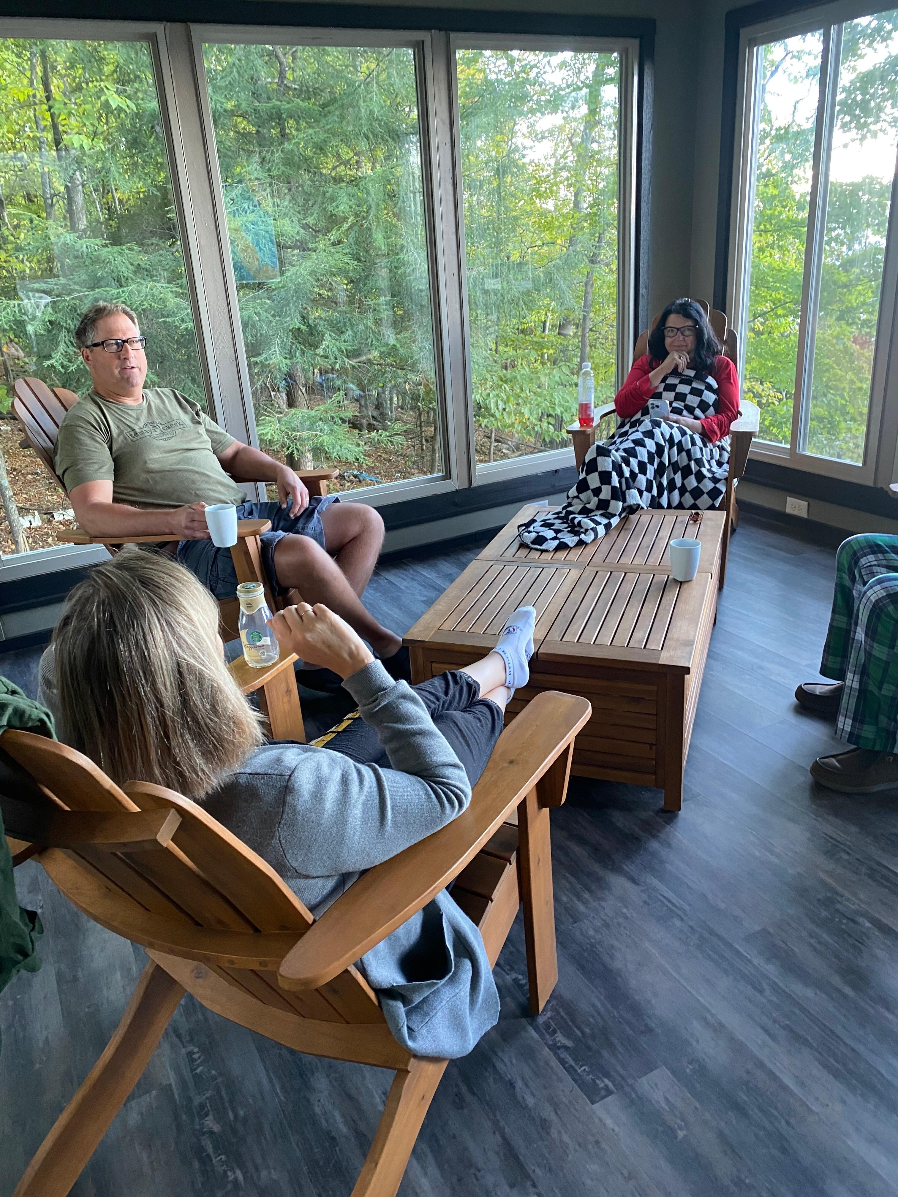Three BFFs went to play,In a lovely cabin for 7 days.The porch was cozy and the deck sublime.All the amenities were at their prime. The sunsets were a bonus; took our breath away.We had a wonderful time in this cabin on Green Bay.