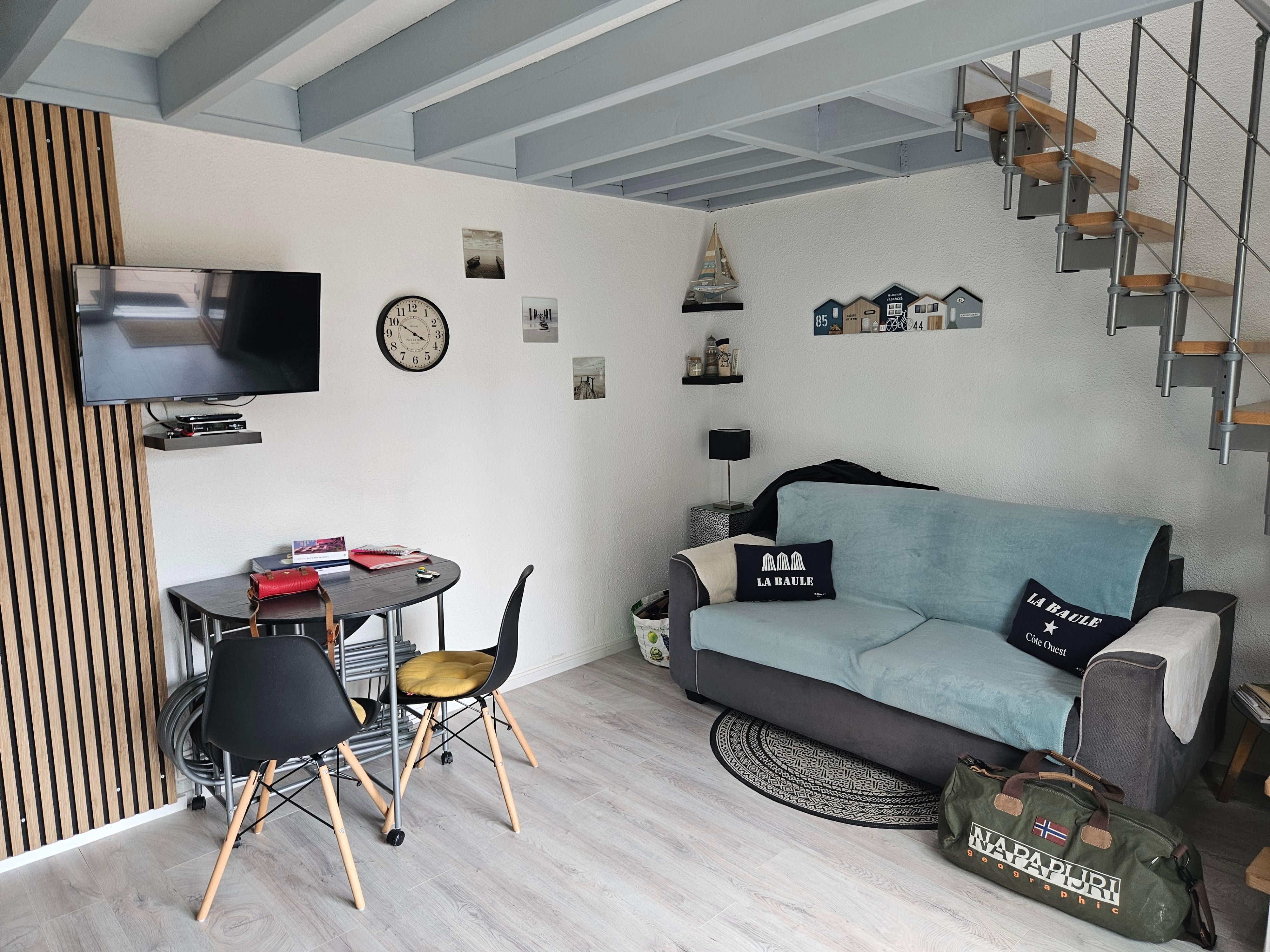 Petit appartement trÚs bien équipé.Avec terrain et terrasse. Parking privé et gratuit. Situé entre La Baule et Le Pouliguen. Propriétaires adorables.
