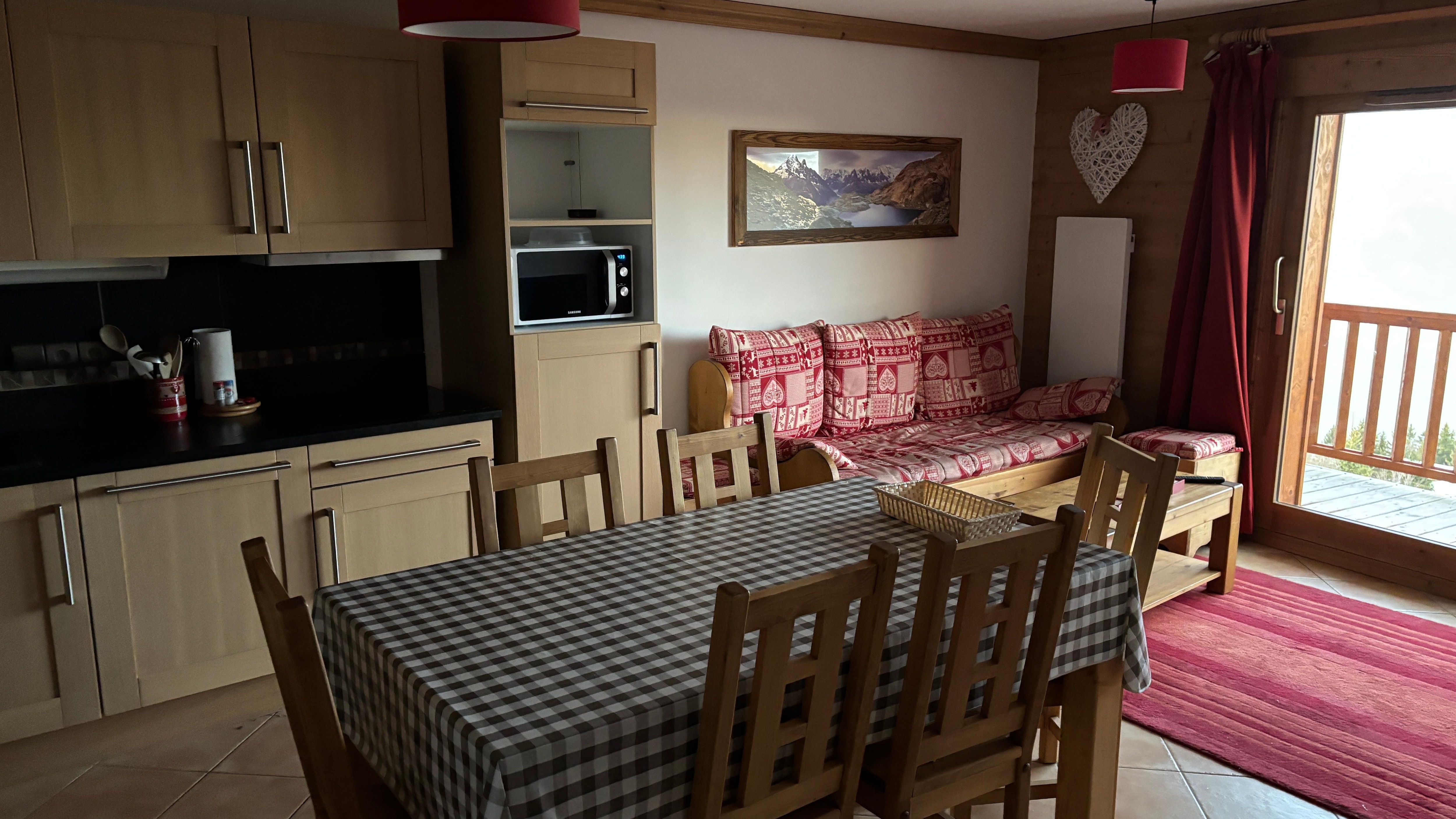 Appartement le plus confortable, pratique, agrĂ©able que nous ayons pu avoir au ski avec ses 2 vraies chambres, beaucoup de rangements, salon parfait Ă 5. Vue splendide, piscine incroyable, casier Ă skis immense. Il se mĂ©rite un peu, 5 grosses mins Ă pied du Dahu, ou de la piste, câest sans doute Ă cause de la pĂ©riode (derniĂšre semaine de la saison en avril) donc moins de neige quâen pleine saison.La station de 1800 nâest pas la plus intuitive en arrivant en voiture lorsque lâon ne connaĂźt pas, arrĂȘt nĂ©cessaire Ă la station principale pour rĂ©cupĂ©rer les clĂ©s en bas. Bien prendre connaissance des instructions en amont. Une fois la voiture posĂ©e, les chemins piĂ©ton sont agrĂ©ables. Arc 1800 est parfaitement situĂ© sur le domaine des arcs, bref un sĂ©jour ski printanier trĂšs agrĂ©able !