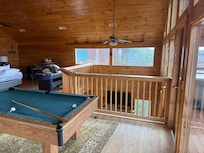 L'escalier en colimaçon mĂšne au grenier et offre une vue panoramique sur les montagnes. Profitez de la vue tout en jouant Ă la grande table de billard ou au hockey sur air avec une table de pub et des chaises Ă proximitĂ©. Vous pouvez profiter de l'intimitĂ© du jacuzzi Ă l'intĂ©rieur, au deuxiĂšme Ă©tage, ou profiter de l'expĂ©rience complĂšte de la montagne dans le bain Ă remous pour 4 personnes situĂ© sur le balcon supĂ©rieur. Le niveau supĂ©rieur comporte Ă©galement un lit king qui vient d'ĂȘtre ajoutĂ© Ă l'automne 2019, oĂč vous pourrez vous rĂ©veiller et profiter de la vue imprenable sans mĂȘme quitter le lit! Ou regardez la tĂ©lĂ©vision SMART 43 pouces. Il y a aussi un tout nouveau canapĂ©-lit queen-size pour une capacitĂ© de couchage accrue.