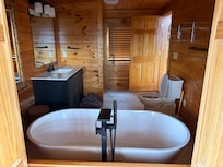 Ou restez au niveau principal pour profiter de tous les Ă©quipements fournis. Vous pouvez choisir parmi les tĂ©lĂ©viseurs SMART 55 pouces avec les chaĂźnes Xfinity. Ou dĂ©tendez-vous dans les fauteuils Ă bascule situĂ©s sur le balcon infĂ©rieur tout en admirant la vue. Profitez du gril Ă charbon extĂ©rieur et dĂźnez sur la table de pique-nique au balcon du premier Ă©tage. Ou Ă©coutez votre musique prĂ©fĂ©rĂ©e devant la cheminĂ©e Ă©lectrique. Lorsque vous ĂȘtes prĂȘt Ă passer une nuit, retirez-vous dans le lit moelleux KING SIZE de la chambre fermĂ©e, avec sa commode normale et sa salle de bain complĂšte.