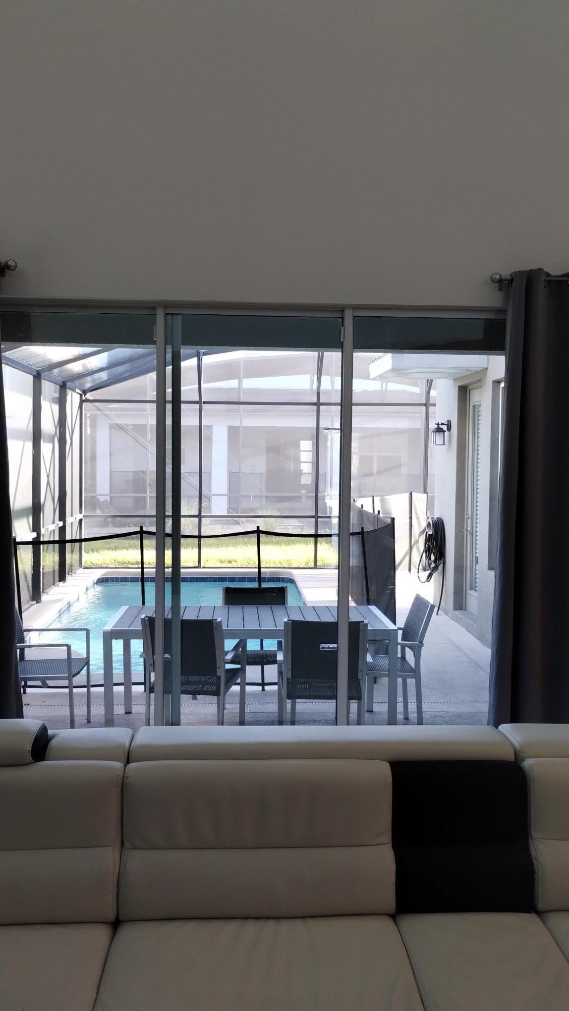 We did not receive a valid code to get in our unit from the host. We waited outside about an hour trying to get in after 10pm. Apparently the host does not help you after 10pm. Thank God, VRBO gave me a valid code to get in otherwise we would have had to go find a hotel for the first night. The back sliding door and the bottom bathroom door to the pool did not lock and there are no curtains in the huge living room, there are three huge sliding patio doors so you are totally exposed to all the close neighbors looking in. We all felt very unsafe and exposed and would never stay here again.