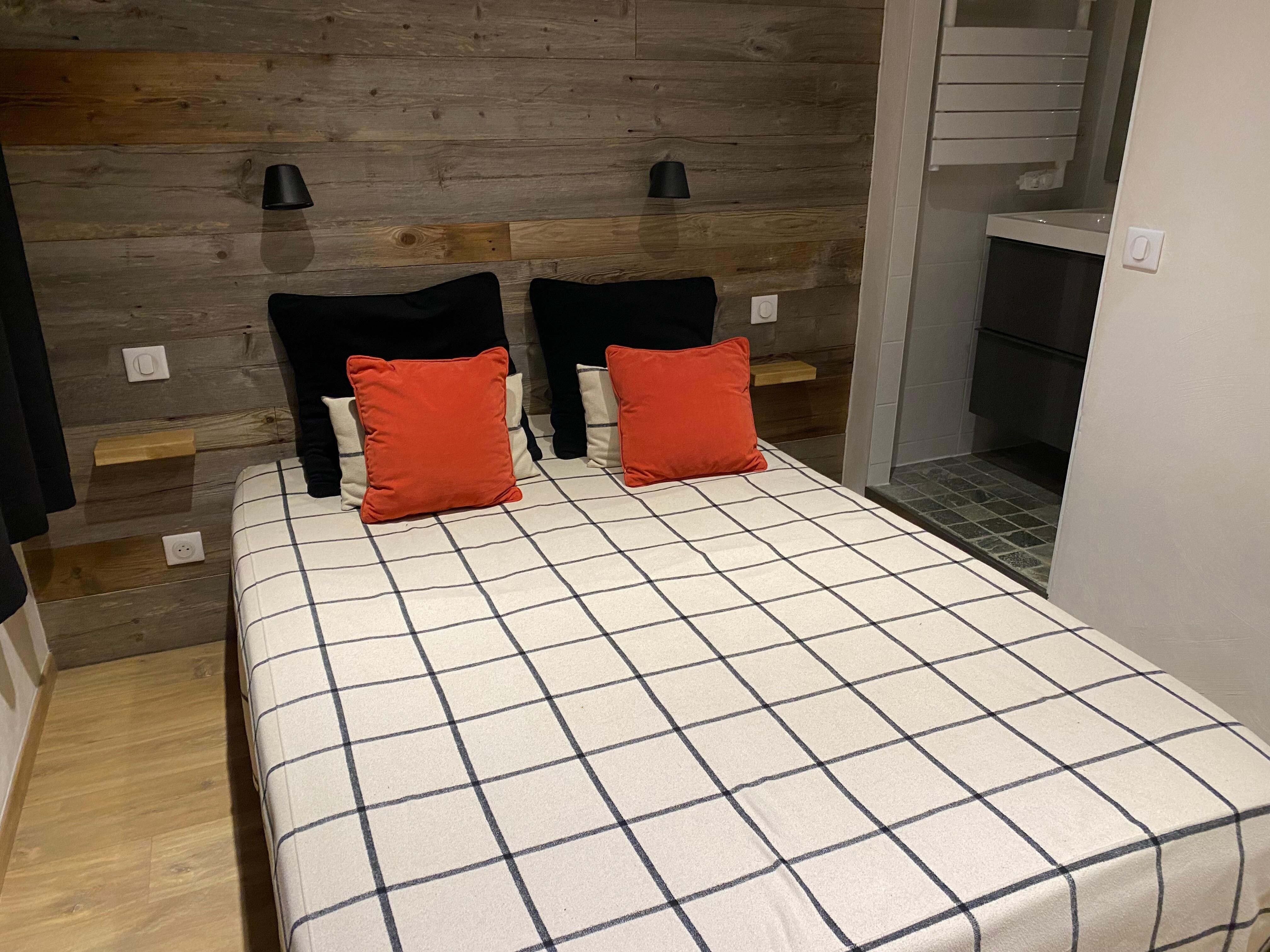 -Une chambre parentale avec salle d'eau attenante (douche, sĂšche serviette) et grand placard-penderie / coffre.