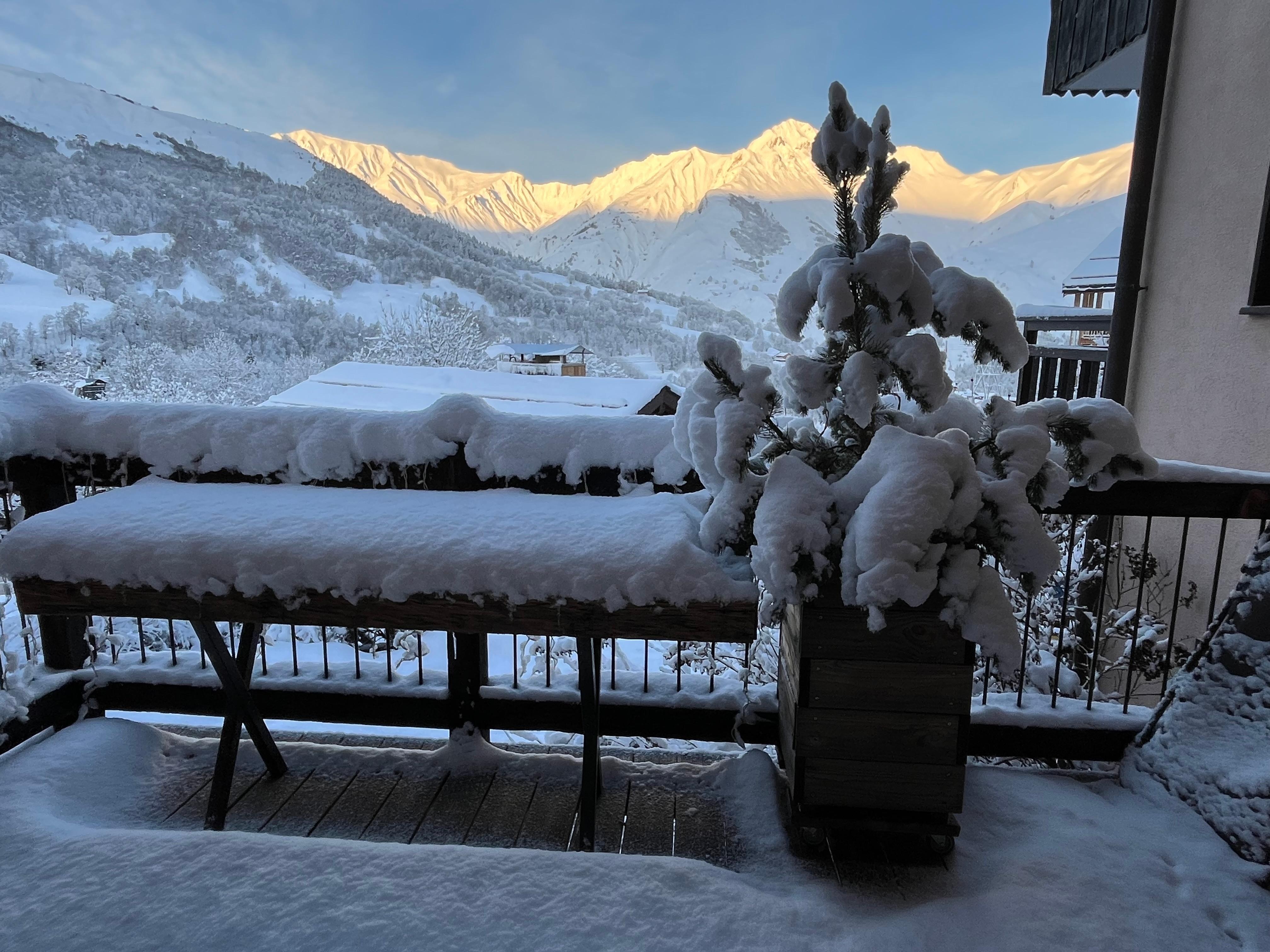 - belle terrasse aménagée (chaises longues, table pour 6/8, plancha ...) avec vue montagne.