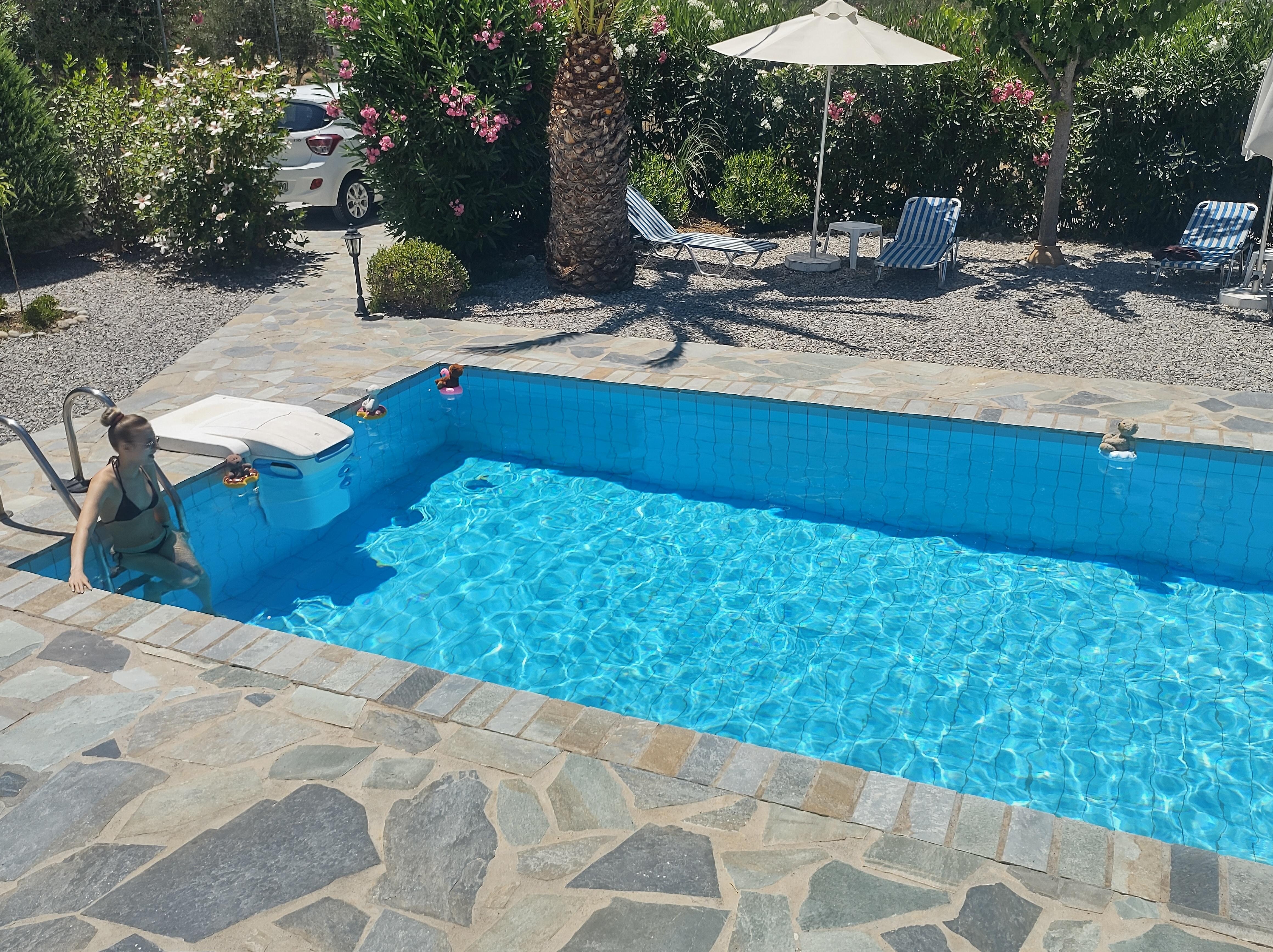 There are lots of different corners, with chairs, cushions and bed chairs, so we could each enjoy our own space comfortably. The pool was crystal clear, and we had lots of fun. Don't forget to bring your own pool towels.