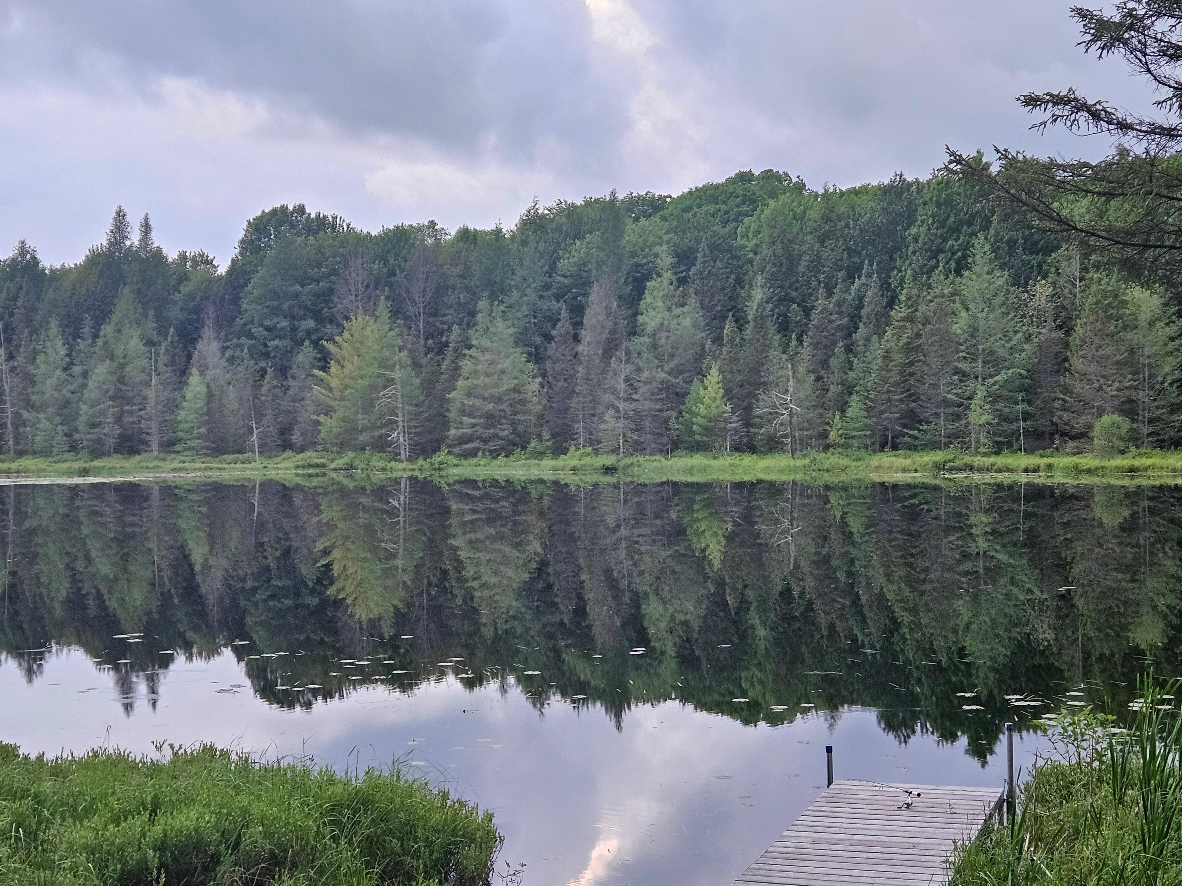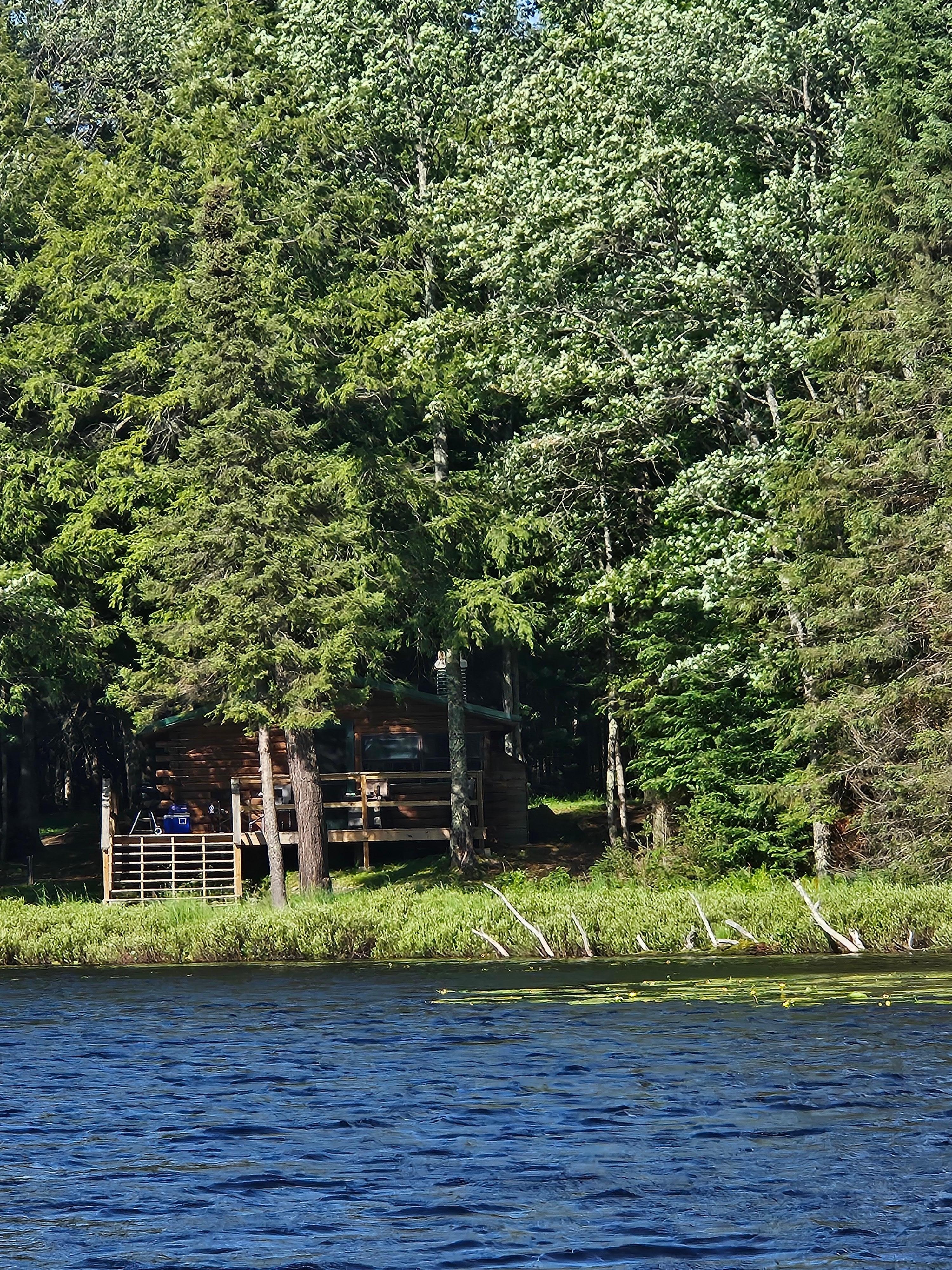 Each cabin includes a wood-burning fireplace for warm, comfortable evenings and a 12-foot fishing rowboat for your enjoyment on the lake. This cabin is located deep within the property, accessible via a gravel road approximately five miles in.