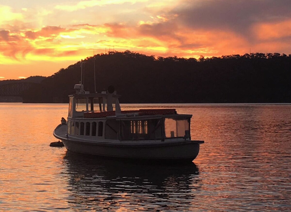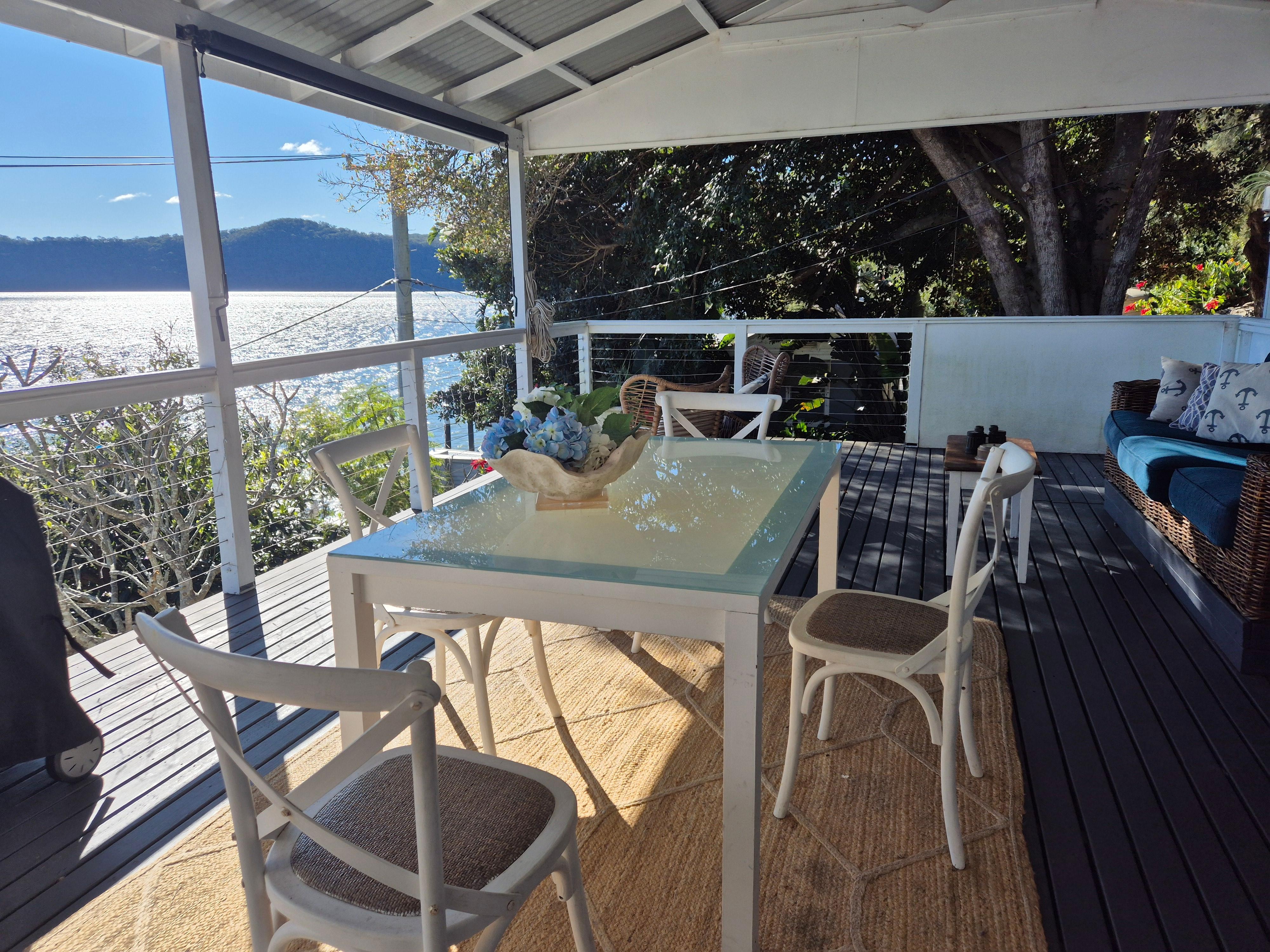 Tranquil yet adventurous setting with homey facilities. Fantastic coffee machine, Living room inside, and huge deck with BBQ. Artist studio with writing desk and intreguing bushwalks, kayaking, swimming experiences and friendly, respectful neighbours. Dangar Island is a ferry trip or a kayak away for a more social, cafe trip, and Byo supplies for a real get away - Boat Access only is an opportunity to tune into the rhythms of nature. Telstra, Vodaphone Hotspot for Wifi, Mains Power & Tank water available. Great spot for Kookaburras & Lyre birds, Eagles & Ospreys, Magpies, lizards and a few bush turkeys plus a bit of fishing.