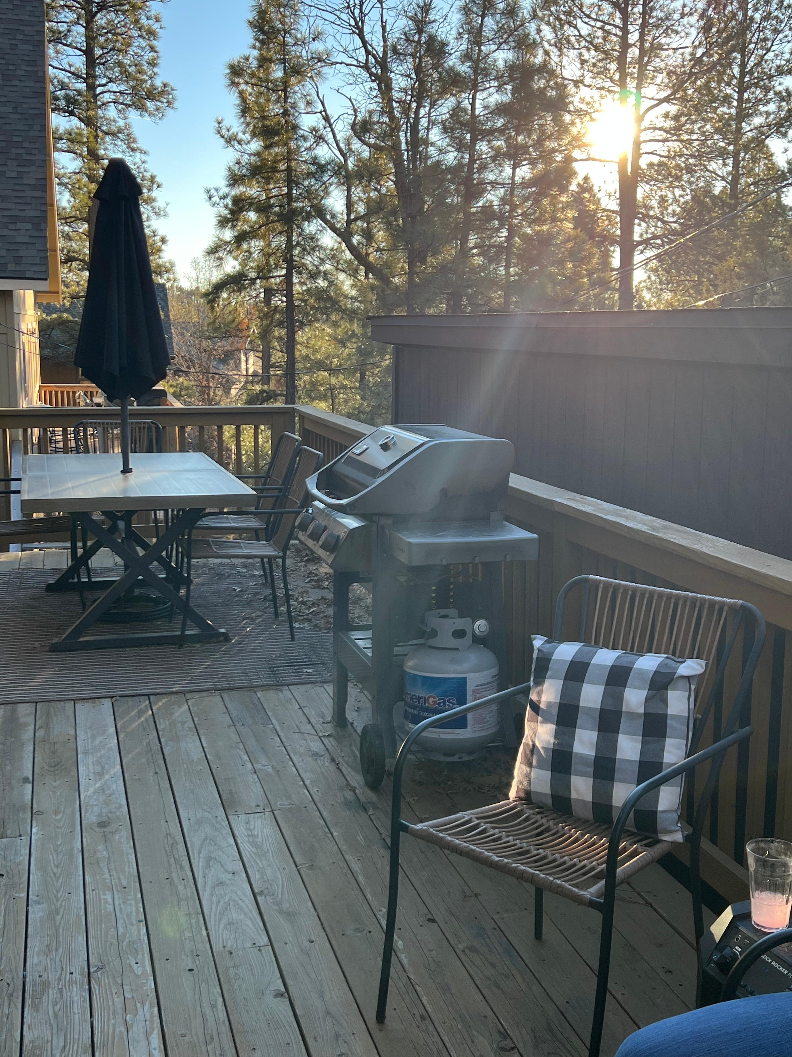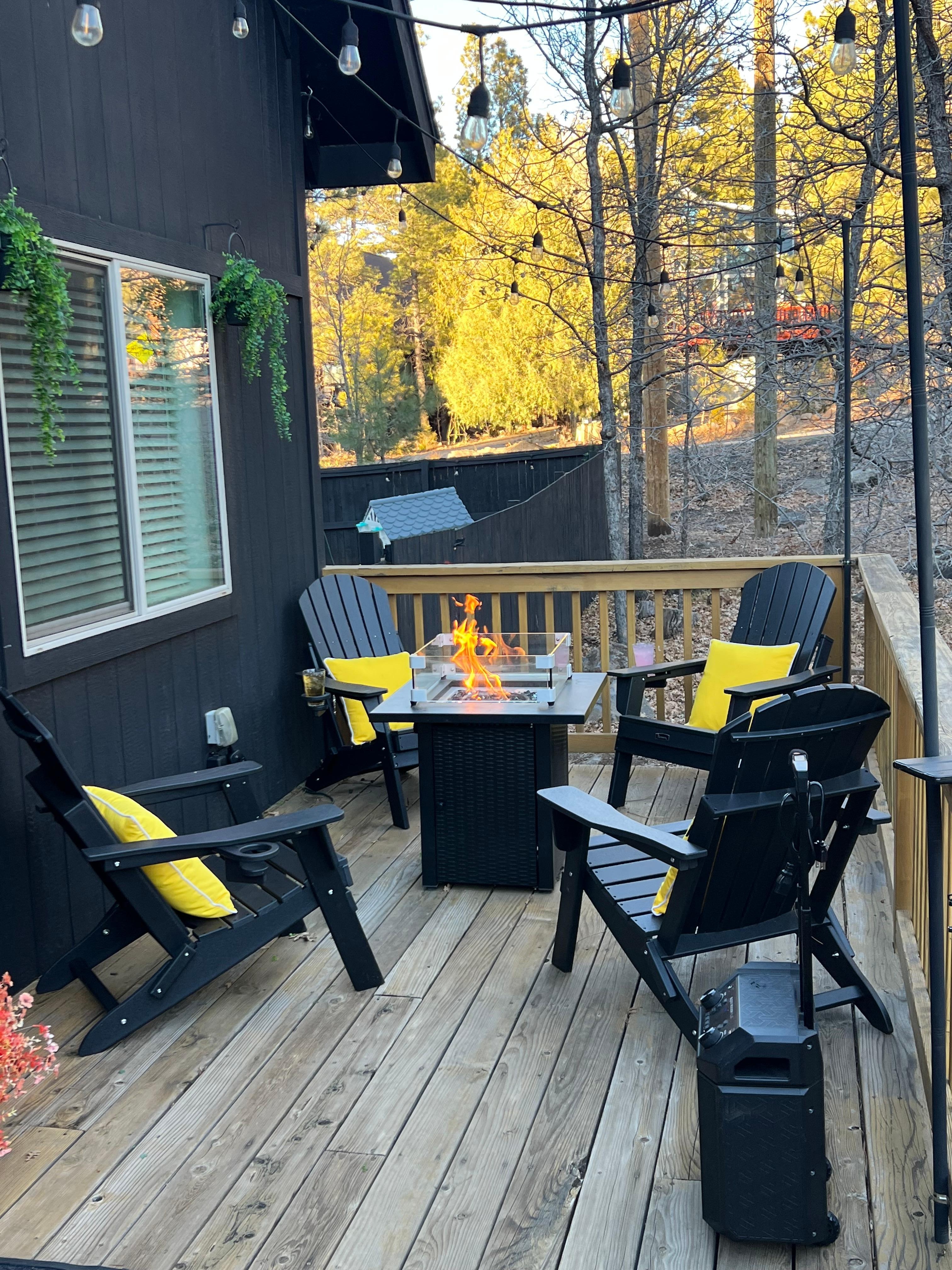 OUTDOOR LIVING- Gas fire table, lounge seating- Gas grill, dining area- Front & back decks- Cornhole