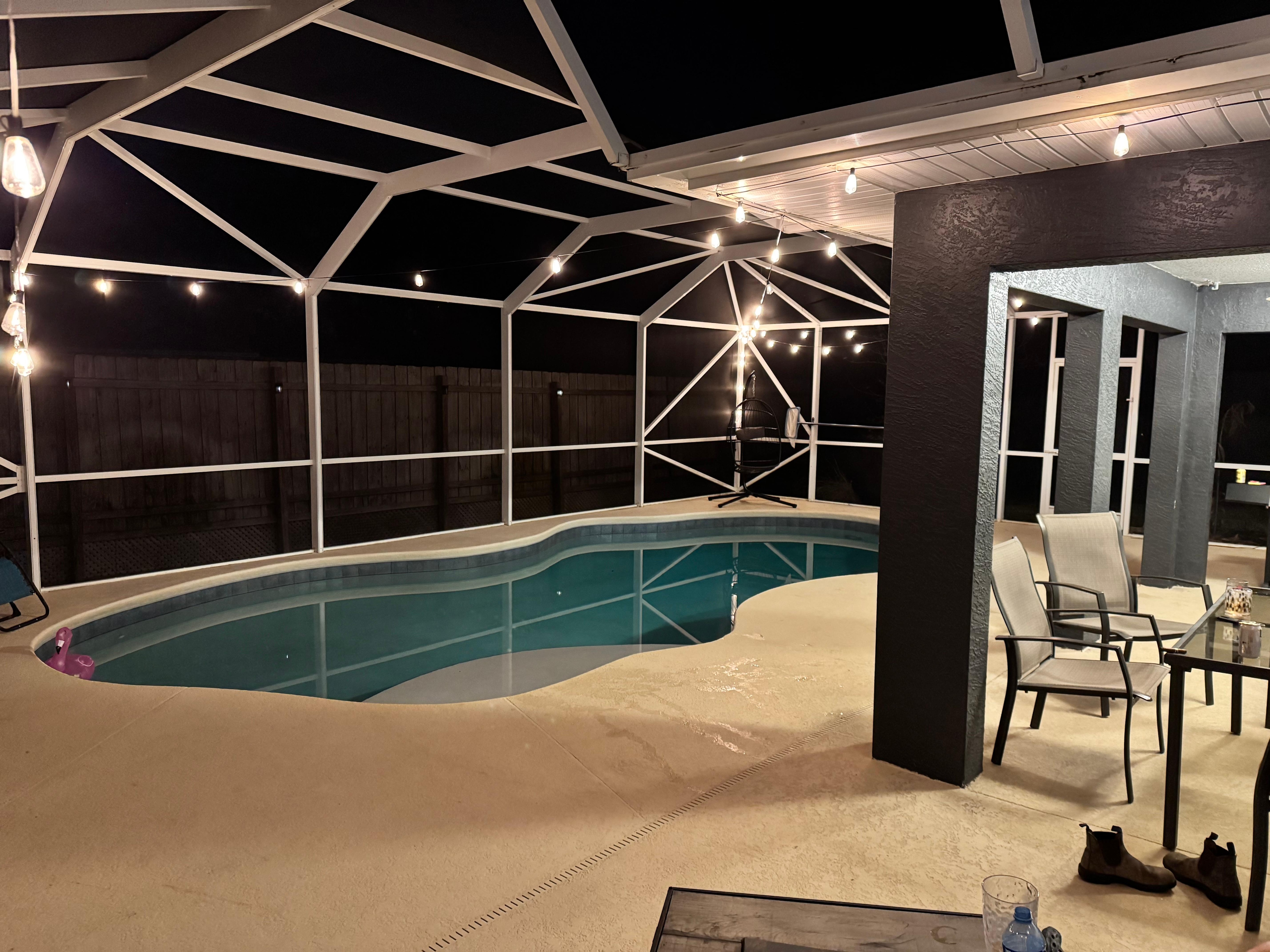 This property was great. Communication with the host was fast. Great location in a quiet neighborhood. Kitchen and common area was spacious and comfortable. The ambiance around the pool at night was very enjoyable.