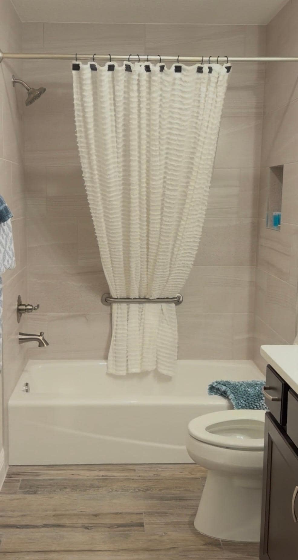 - Roll-in/walk-in shower