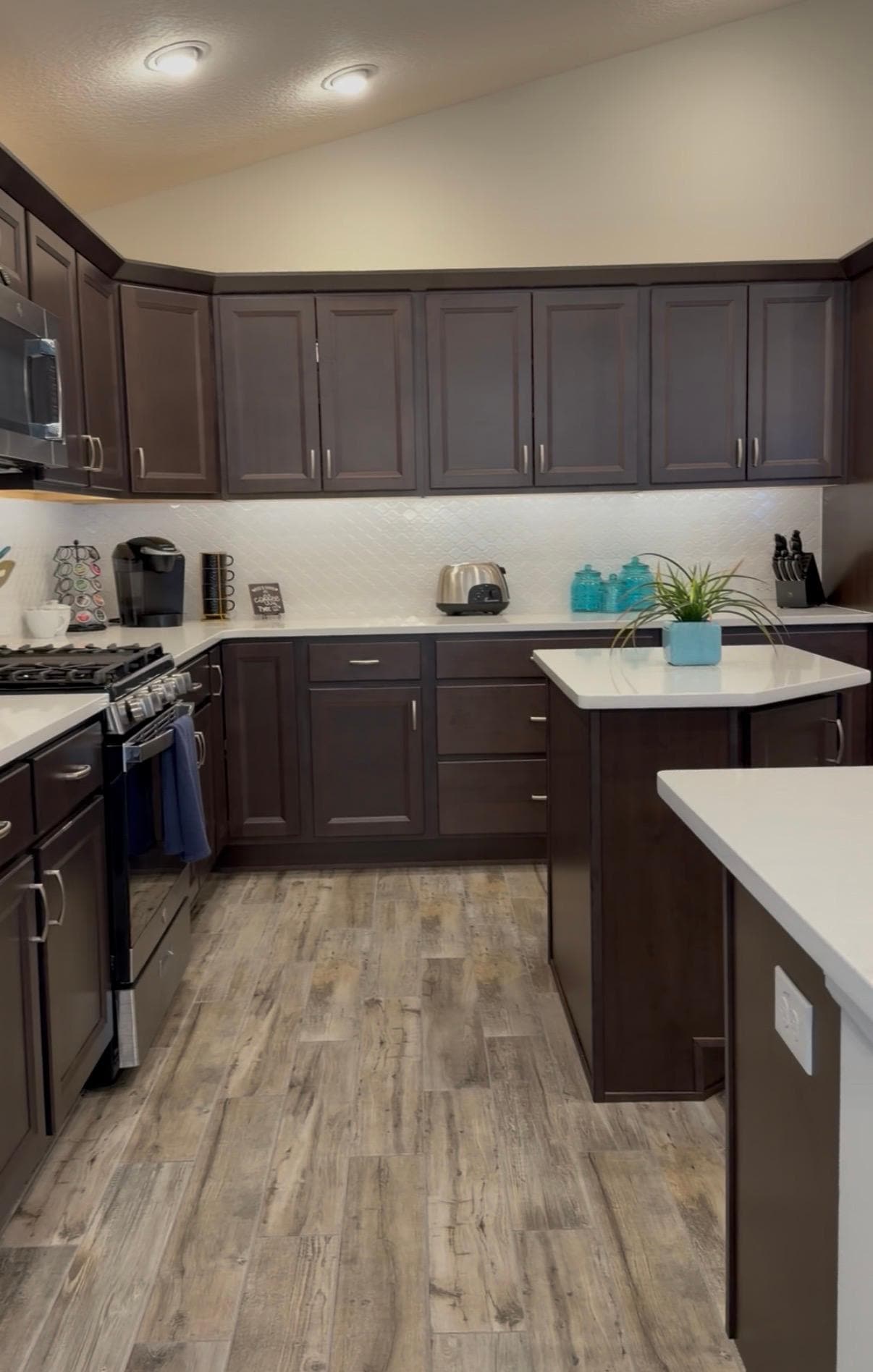 - Filtered drinking water, quartz countertops, stainless steel appliances