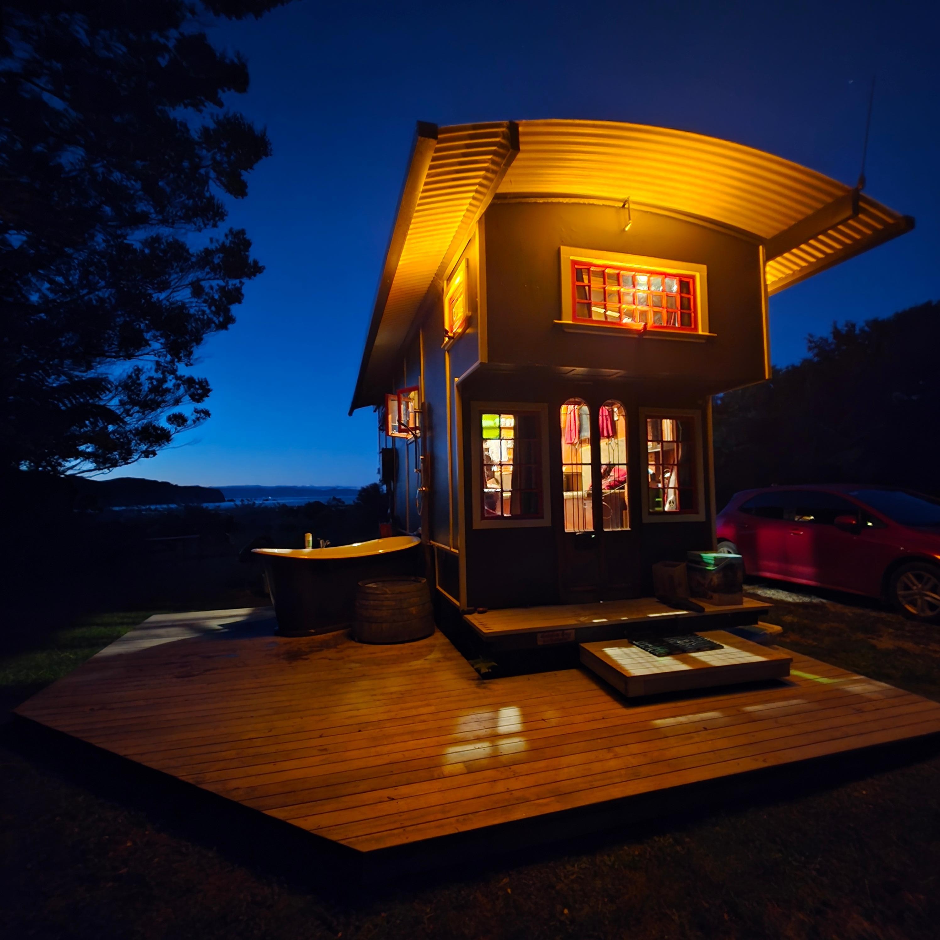 A lovingly restored and beautifully presented old house truck with fantastic sea views in a private bush location. This fully equipped wagon is a cosy sanctuary to restore your pioneer spirit. Two queen size beds are accessed by steps and there's an outdoor bath and shower with a separate composting toilet in its own adjacent hut.