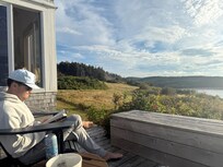 Cape Breton is a spectacular place, and the scenery on this stretch of coast is particularly striking; it can also be dramatic, with 130 kph winds at many points of the year. There is such a rich culture here, historically and musically, and life unwinds at its own special pace. We see some of the most dramatic sunsets anywhere, watch whales play in our front yard, and fishermen haul their lobster traps every year. There are the gorgeous rolling hills of Mabou, and the town of Inverness, which offers music, pubs and food; the acclaimed new Cabot Links and Cabot Cliffs golf courses (rated #43 and #9 in the world by Golf Digest) by the sea, which are only 20 minutes away and offer a unique golfing experience in Inverness. Moose, eagles, deer and foxes are regulars. It's easy to meet people, and the daily rhythm here is slower than in most cities; we visit neighbours and friends whenever we can, as we are busy in the summer months. It's also nice to be in a place where you don't need air-conditioning; Cape Breton summers are warm-to-hot in the day, but perfect in the evening, and at the shore there are breezes to keep any bugs at bay. Chimney Corner beach is one of the finest on the island, but because it is not visible from the road, it's usually unoccupied during the weekâ we love to take our dog Ryder there for a good run.