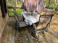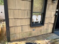 The inside was OK but there was one chair that had imitation leather itâs was peeling everywher. The outside of the house was nothing like the pictures i looked at when I booked it and I booked it because of what it looked like outside beautiful. When we got there the deck & the house look at it hasnât been careful for over 20 years. Paint peeling mold on the house bent screens no screens and torn screens for down stairs living room 1 windows wouldnât even stay up. It kept falling back down The deck in the front & one side of the house had very bad loose railing.the railing behind the barbecue. & The barbecue couldnât be use it. It look like it hadnât been cleaned in years. & front screen door. There was no front screen door. They had some dollar store screen thing that opened and close with magnets & it was falling down at the top right corner. That i temporary fixed so the thing wouldnât fall down when we walked in and out of the door,The deck was filthy and badly faded look like old worn out wood,There was stuff all over it leaves dirt I want my money back a full refund