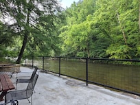 Beautiful riverfront property for your enjoyment! Level lot with covered RV canopy and additional garage for your vehicle. Extra large private lot on a smooth, quiet stretch of the Pigeon River near Townsend TN and the Smokies! Fish, tube or just float right off your back deck! Newly completed rock firepit and concrete patio overlooking river's edge with rock stairwell for easy access going down to the river. Spend quality family time making memories here! Watch the river from inside the great room of the cabin or on the deck either one.