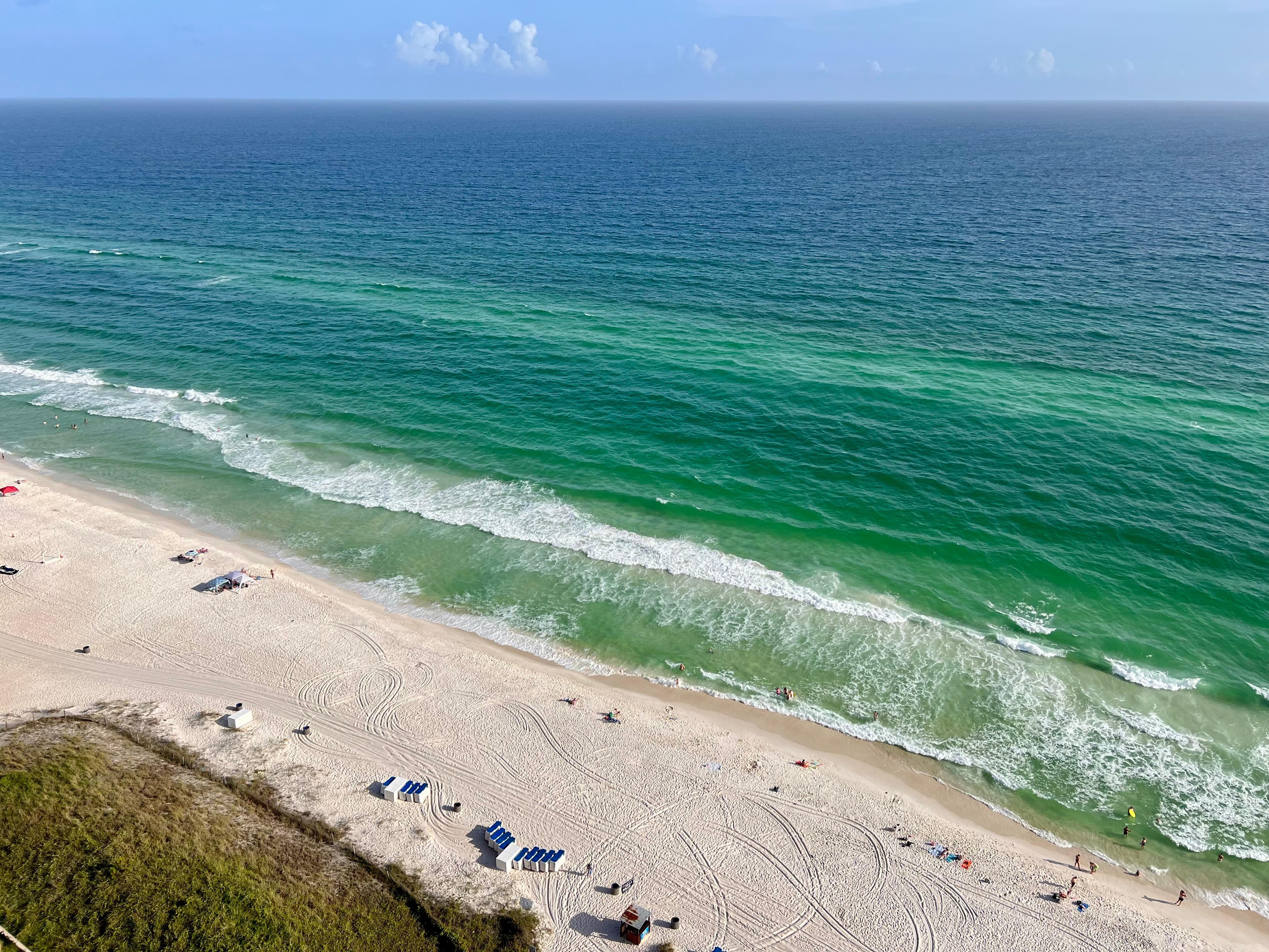 Wake up high above Panama City Beach with the Gulf spreading out before you. Sip coffee on the wraparound balcony as the sun rises; watch sunsets with a cocktail. This 25thâfloor penthouse has remodeled this year with new flooring, spaâlike baths, a modern kitchen, plus a comfy leather sectional and smart TV.