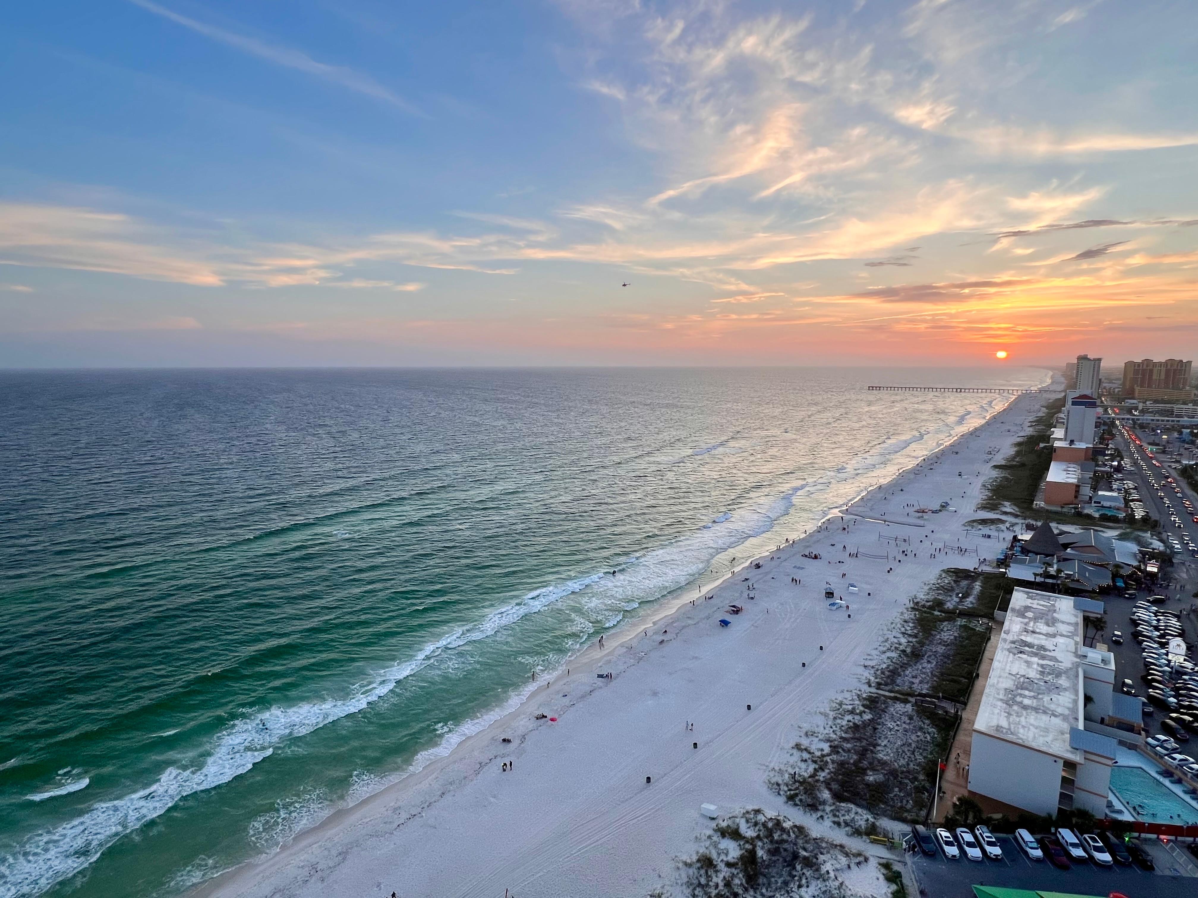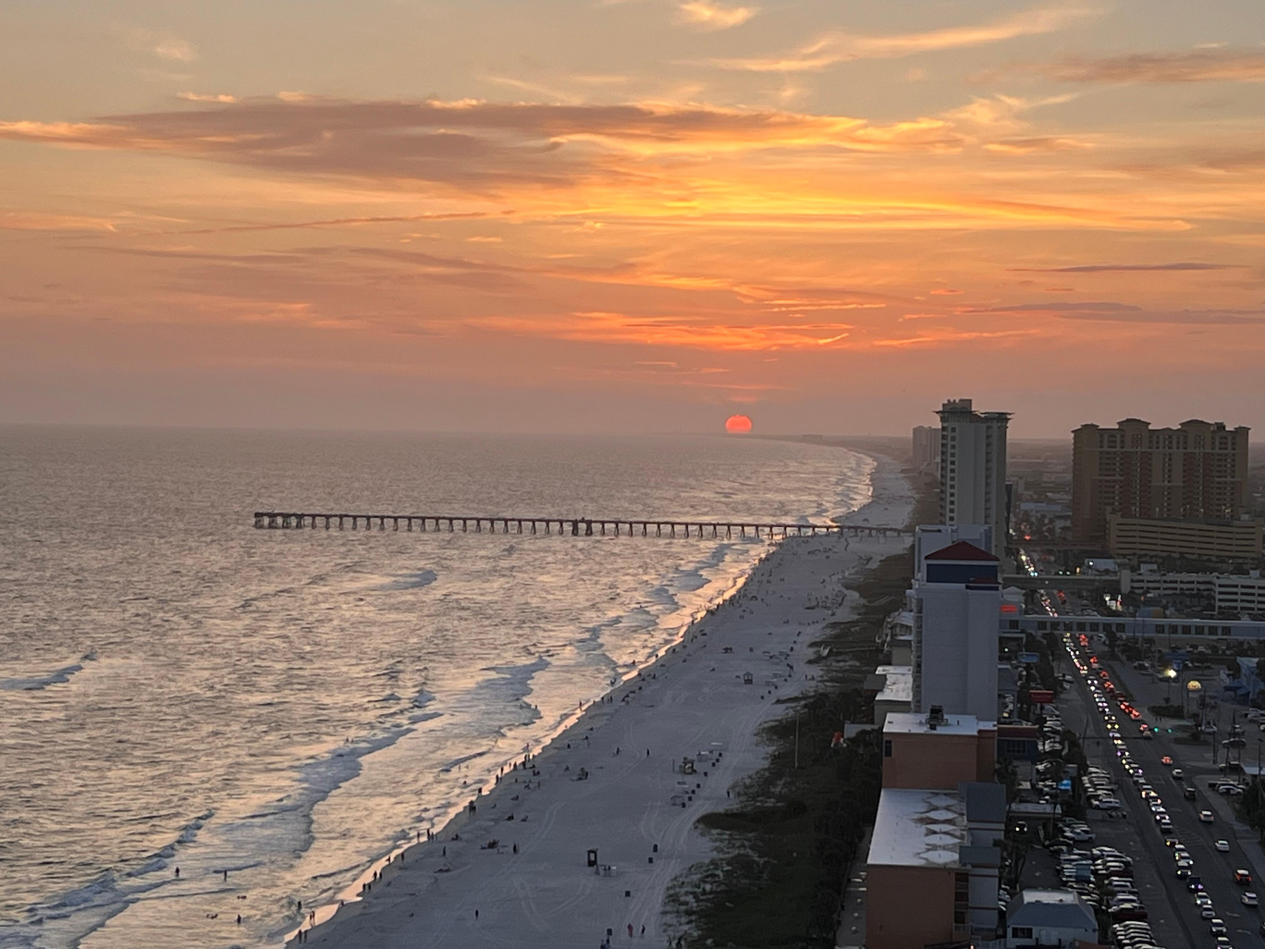 When youâre ready to venture out, leave the car behind. Youâre steps from the white sands and within a short walk of guest favorites like Runaway Island, Sharkyâs Beachfront Restaurant, Moeâs BBQ and Diegoâs Burrito Factory. Pier Parkâs shops and amusements and Top Golf are just minutes away. In autumn, youâll enjoy shorter waits at restaurants and sunsets that feel like your own private show.