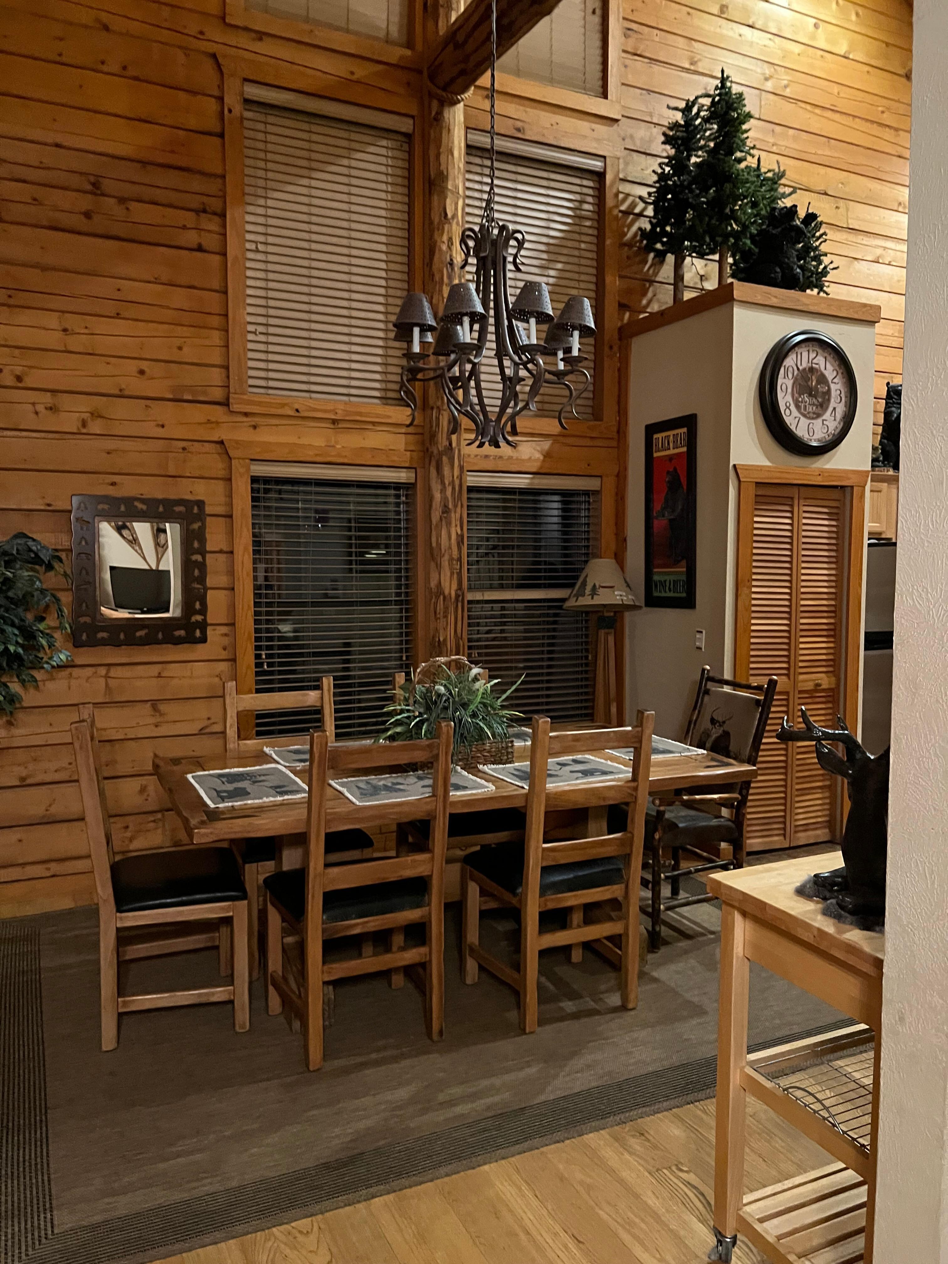Each bedroom comes with a king-size bed, cable TV, and a private bathroom. The inviting living room features a gas fireplace, cable TV/DVD, and a queen-size sofa bed. With a fully-equipped kitchen, dining room, and a private screened-in balcony, this cabin offers ample space for a family. Enjoy the convenience of an in-unit washer and dryer, free wireless internet, and seasonal outdoor pool access during your stay.