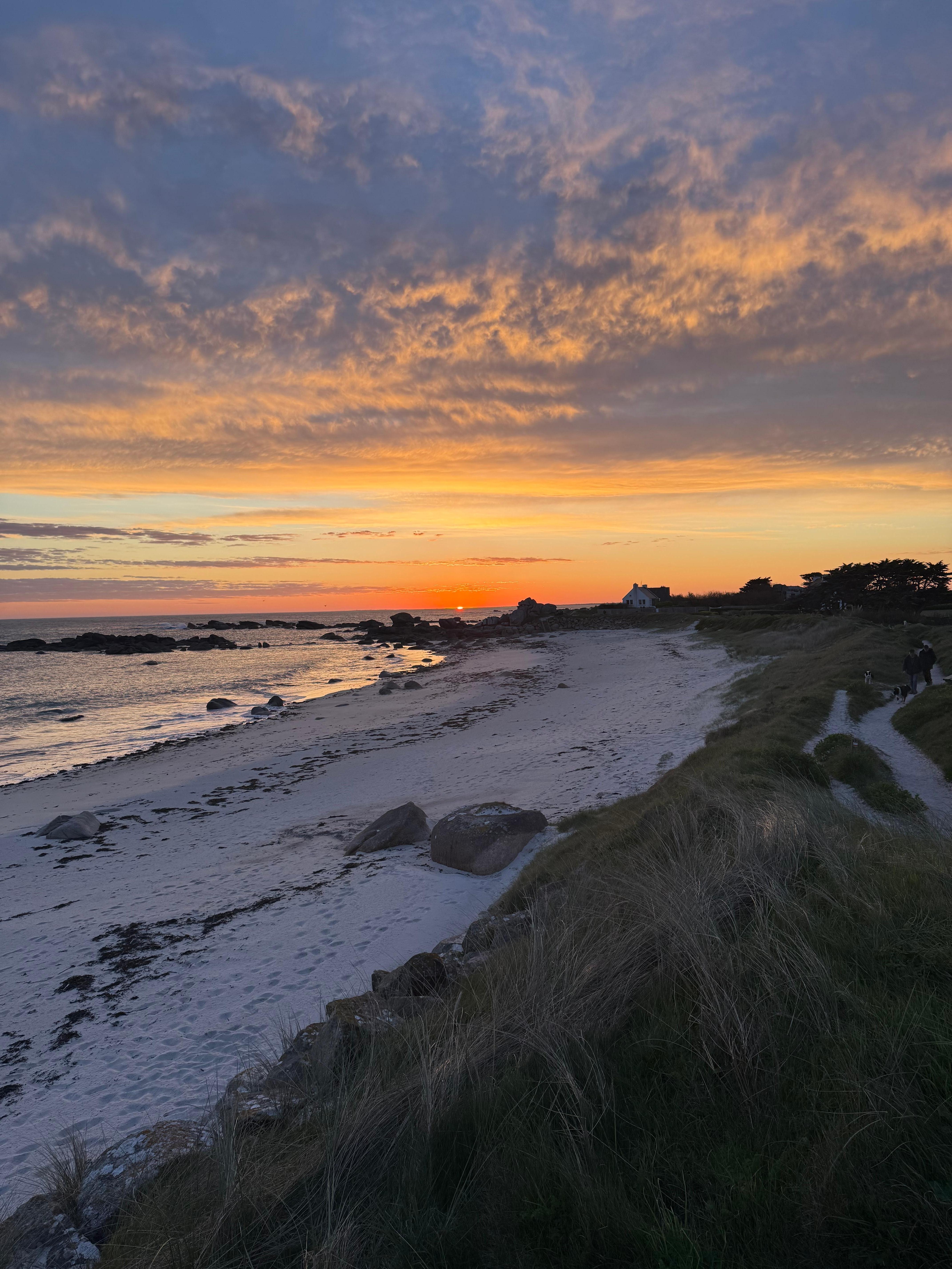 Belle maison de vacances bretonne dans un emplacement privilégié sur une petite baie avec une belle plage de sable protégée.