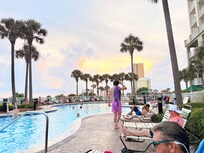 Amazing sunsets and ocean views! Two master bedrooms the Grand Master Bedroom faces the Beach with a private balcony and private bath with shower and soaker tub! The second master has a queen bed with a twin over twin bunk bed and private bath with soaker tub! 3rd bedroom has a Queen bed and the 4th bedroom has two sets of bunks, to include Full over Full beds and a Twin over Twin beds. There is an open kitchen and living room/dining room with Wet Bar! Beach service included! 4 chairs & 2 umbrellas. March until Nov 1st. Grand Panama allows 2 parking passes per booking. One is included in the price, PLEASE advise if you will require the 2nd prior to arrival. Minimum age to rent age 25