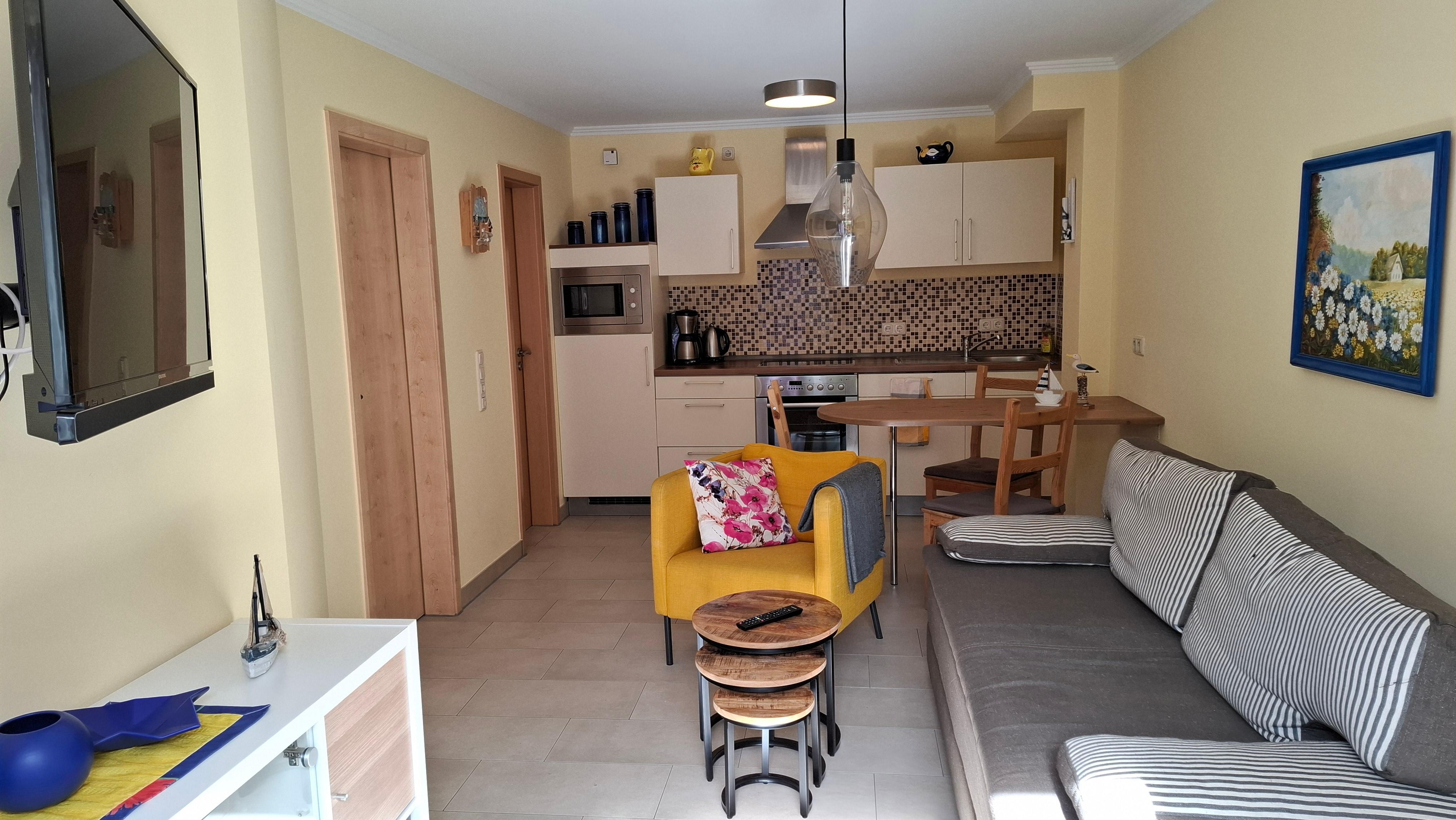 Super Ferienwohnung fĂŒr 2 Personen. Zentrale Lage, Einkaufsmöglichkeiten direkt vor der TĂŒr. Zum Strand 3 min. mit dem Fahrrad. Abstellmöglichkeit fĂŒr FahrrĂ€der hinter verschlieĂbarer TĂŒr.